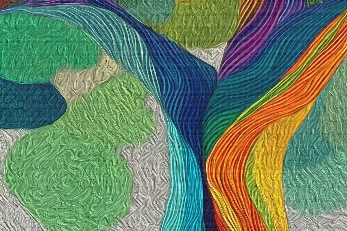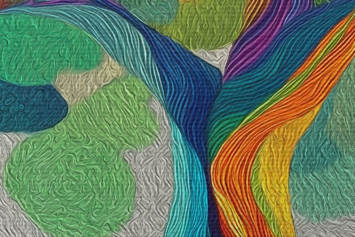 Obrázek Strom s duhovými větvemi na zeleném pozadí Nr r46173