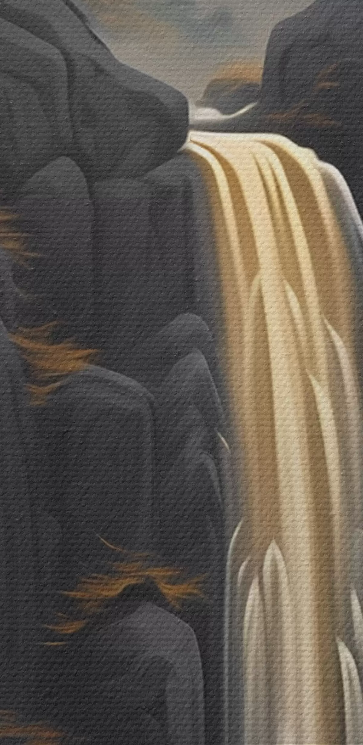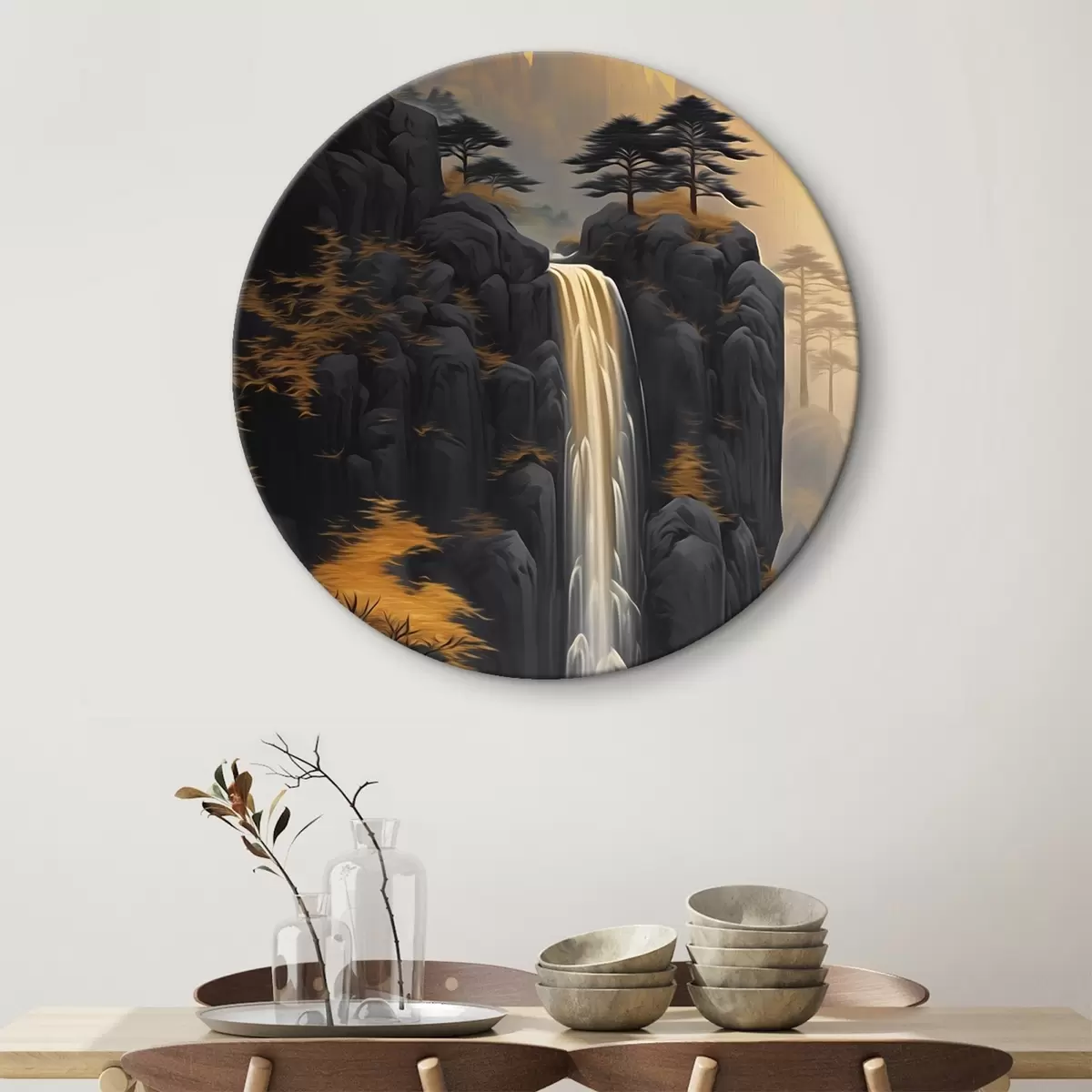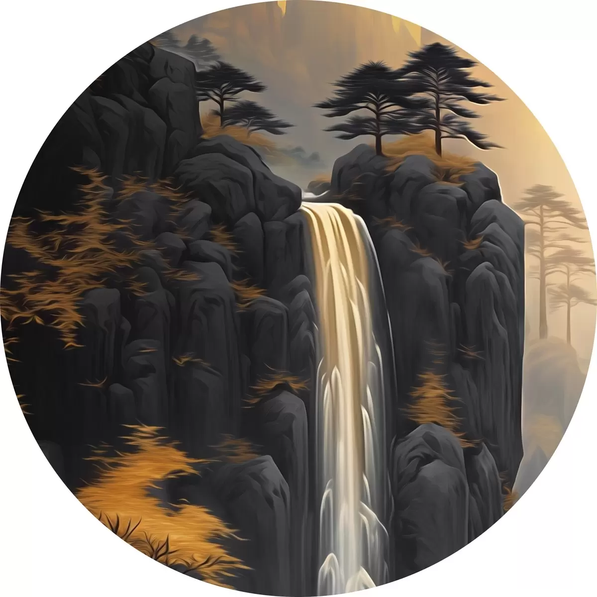 Obrázek Skalnatá krajina s vodopádem v teplých barvách západu slunce Nr r46177