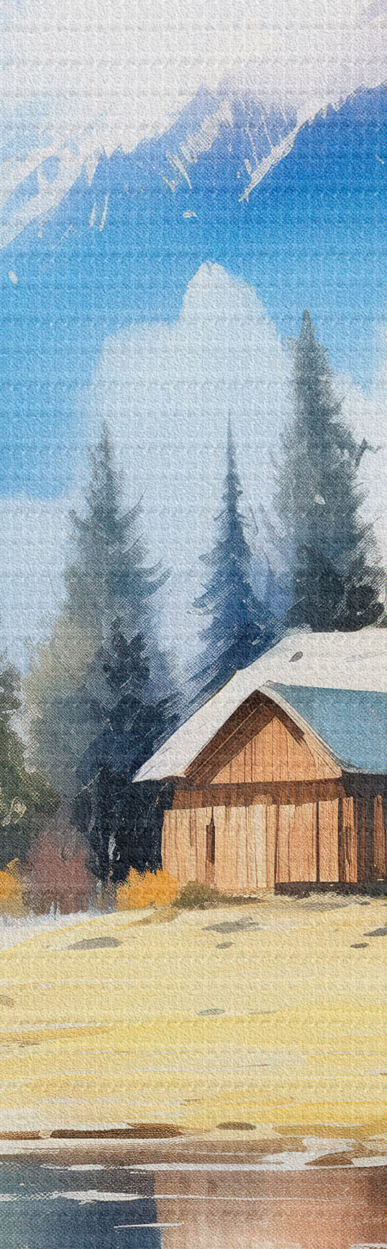 Obrázek Podzimní krajina u jezera s domem a horami Nr r46184