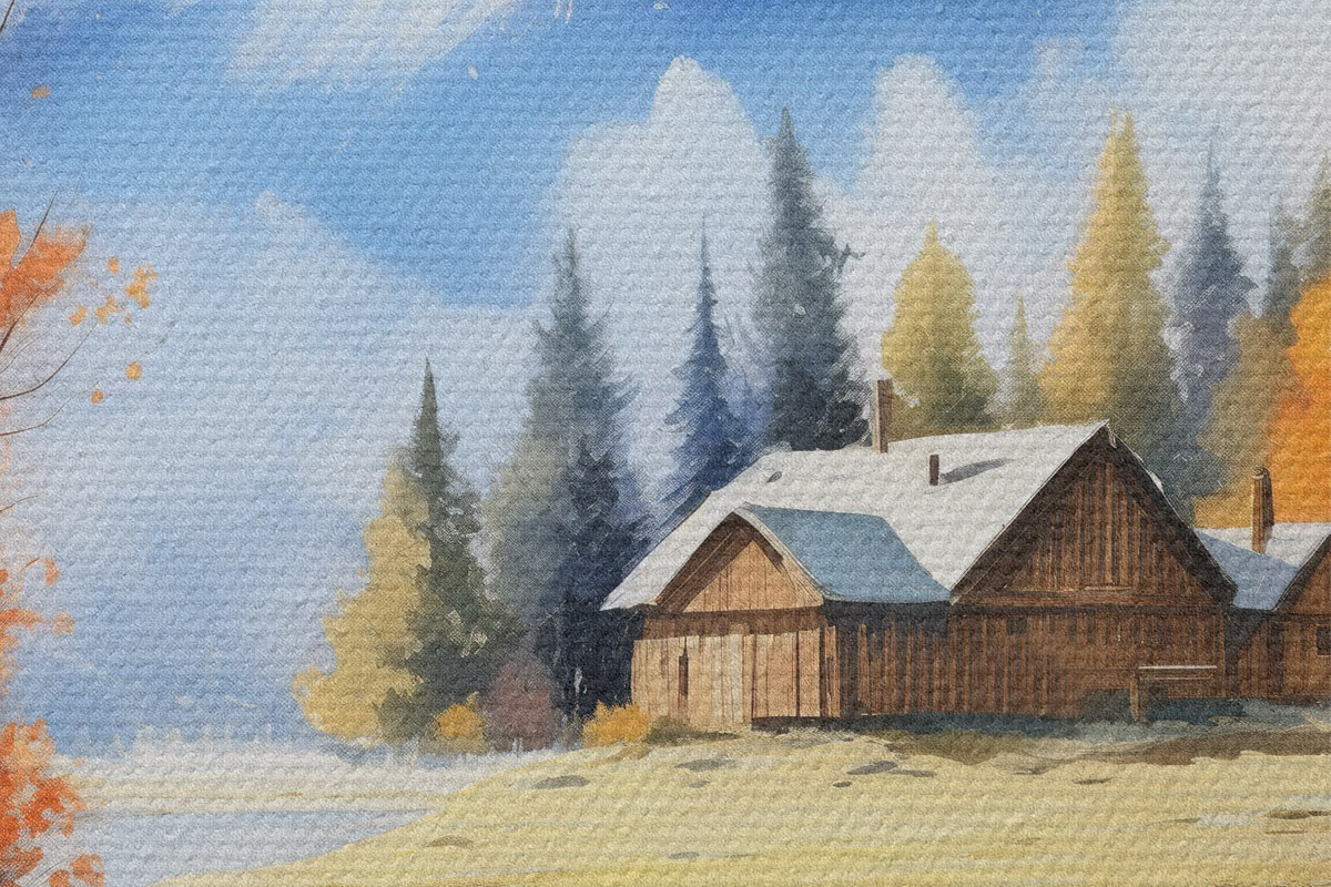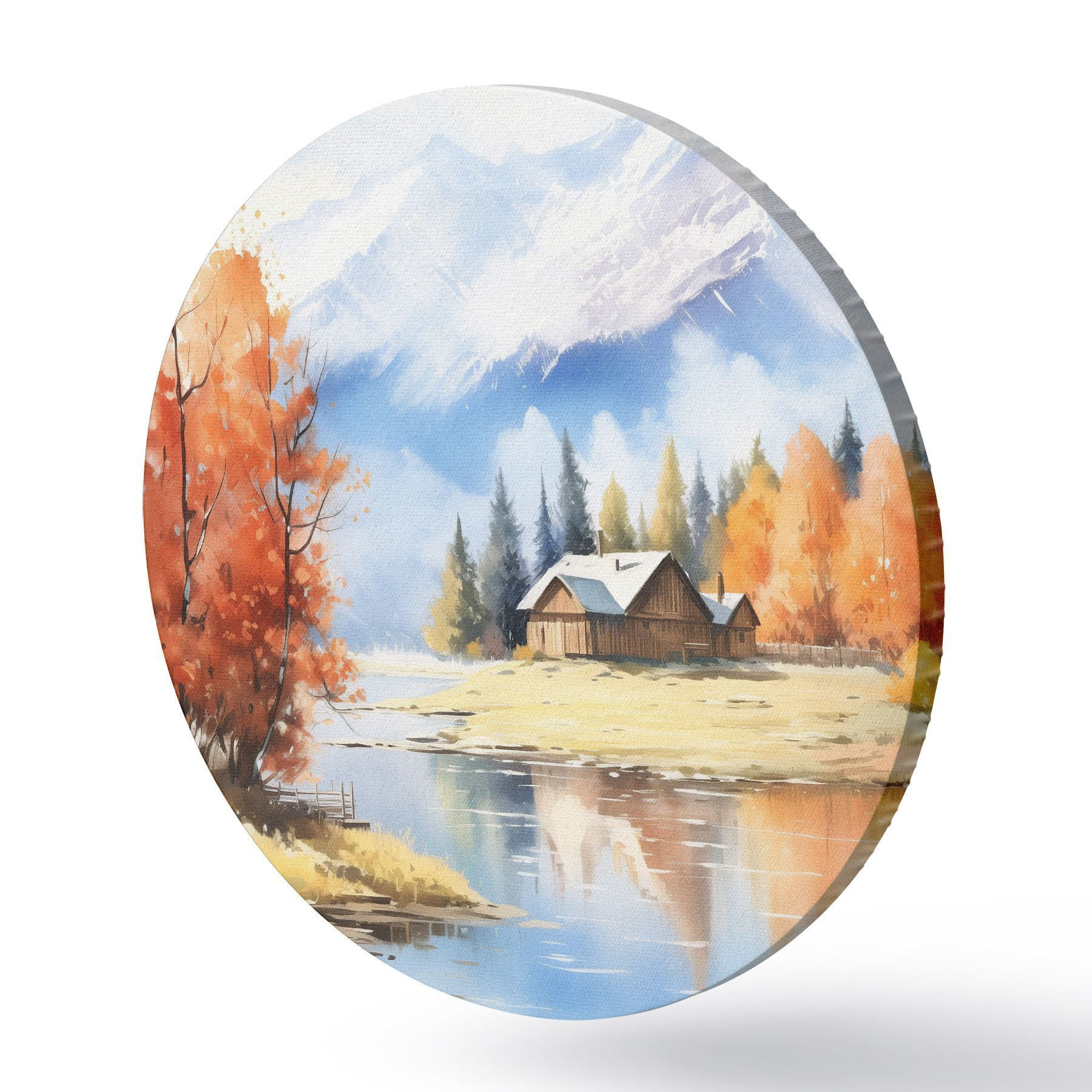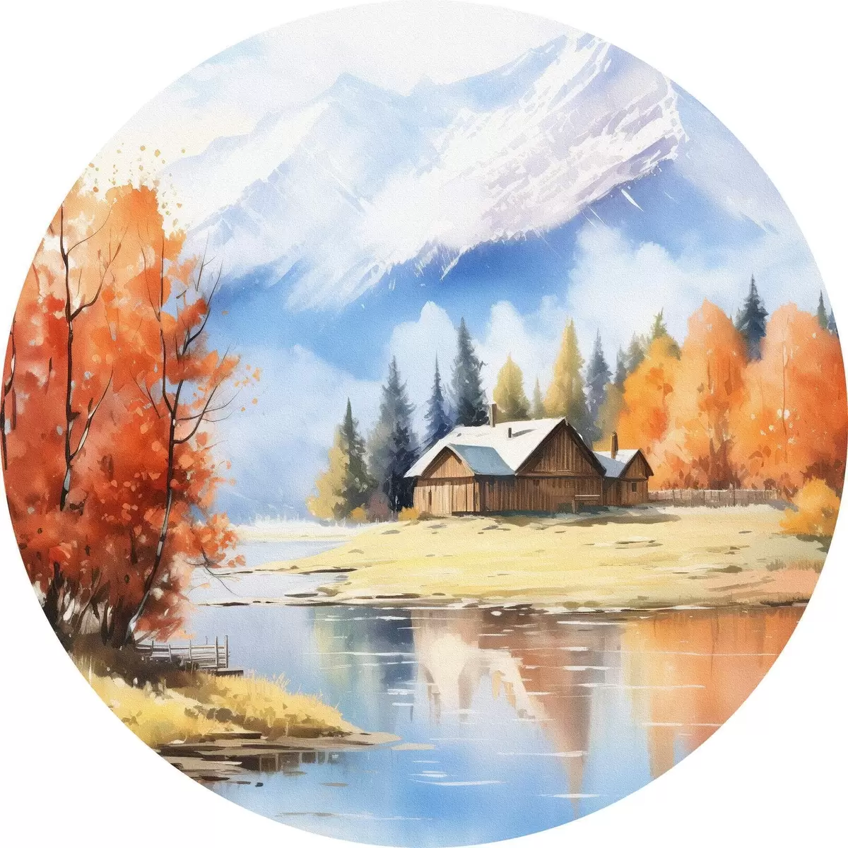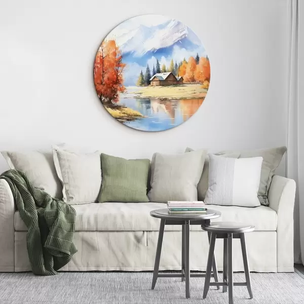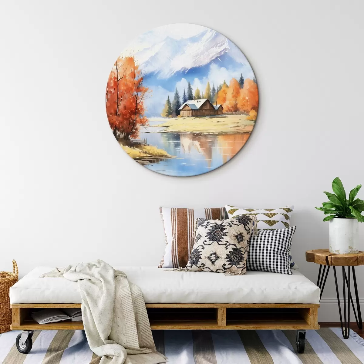 Obrázek Podzimní krajina u jezera s domem a horami Nr r46184