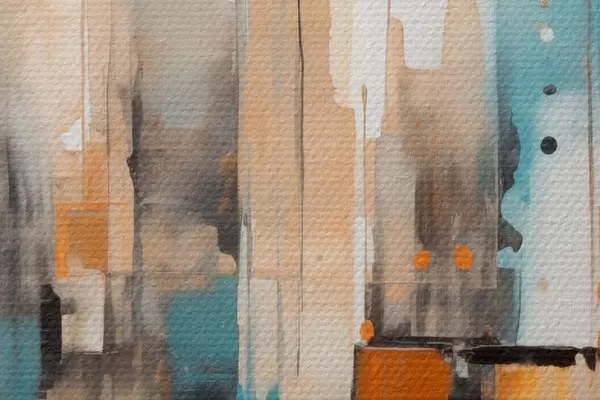 Obrázek Abstraktní městská krajina s oranžovými, tyrkysovými a hnědými vertikálními tahy štětcem a geometrickými tvary Nr r46266