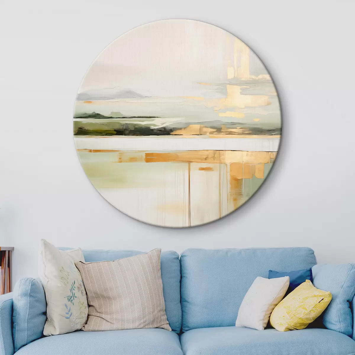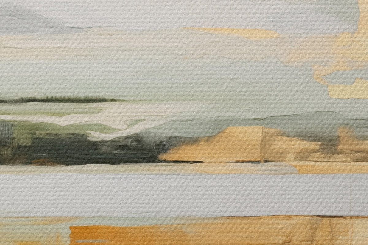 Obrázek Abstraktní krajina se žlutými akcenty, minimalistická kompozice země, vody a oblohy, s tlumenými barvami Nr r46268