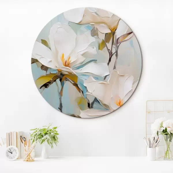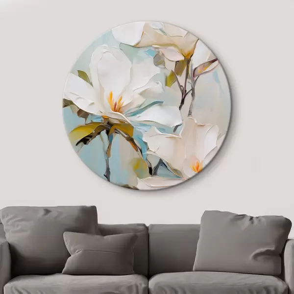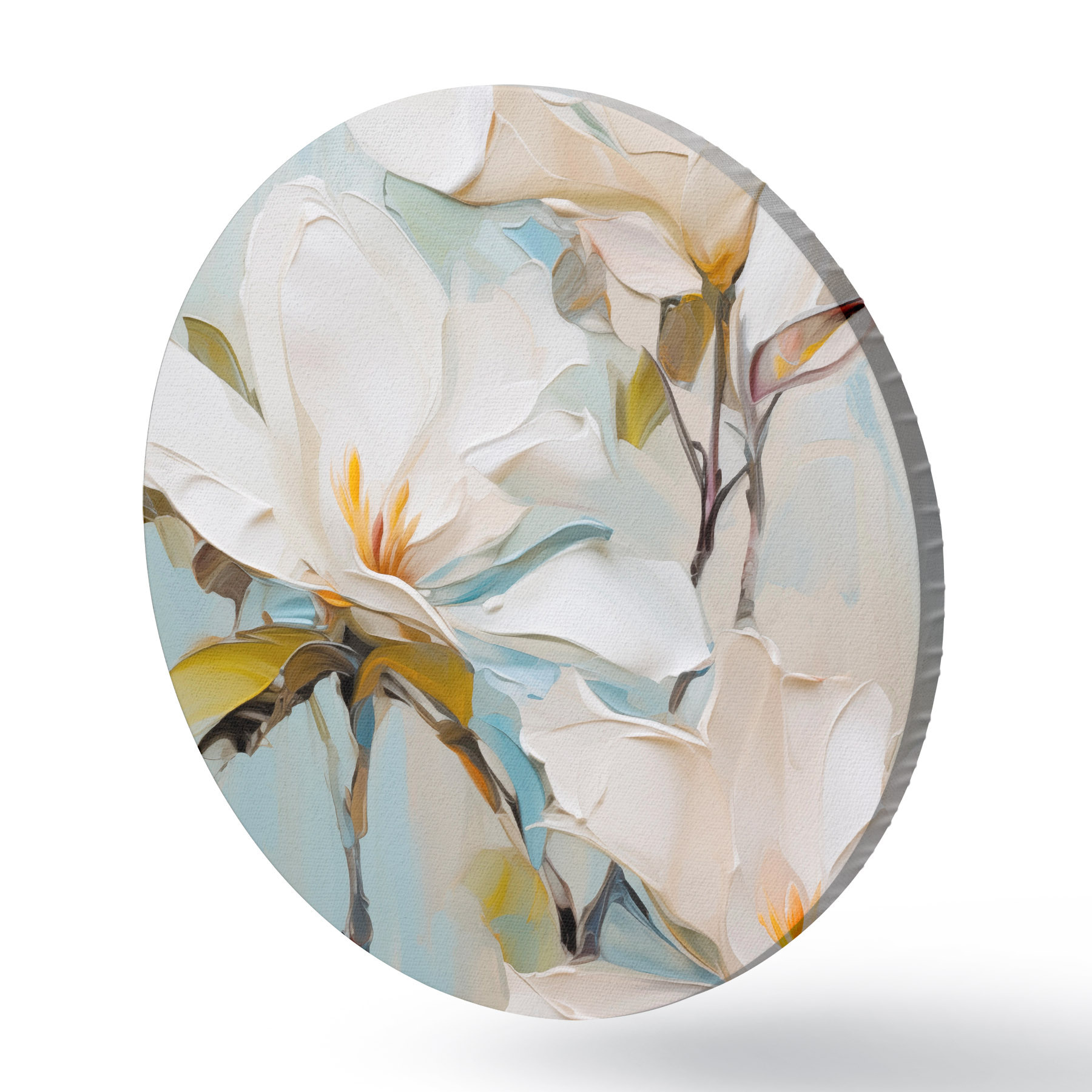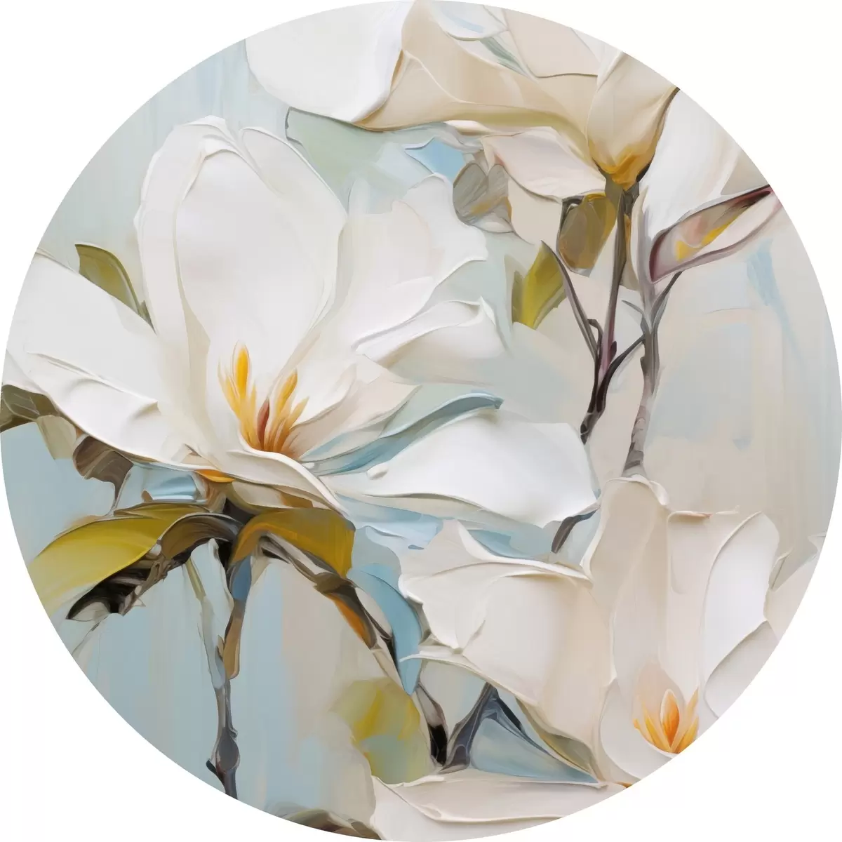 Obrázek Bílé květy magnólie, světle modré pozadí s jemnými tahy štětcem, styl olejomalby, impasto textura Nr r46276
