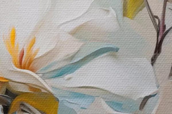 Obrázek Bílé květy magnólie, světle modré pozadí s jemnými tahy štětcem, styl olejomalby, impasto textura Nr r46276