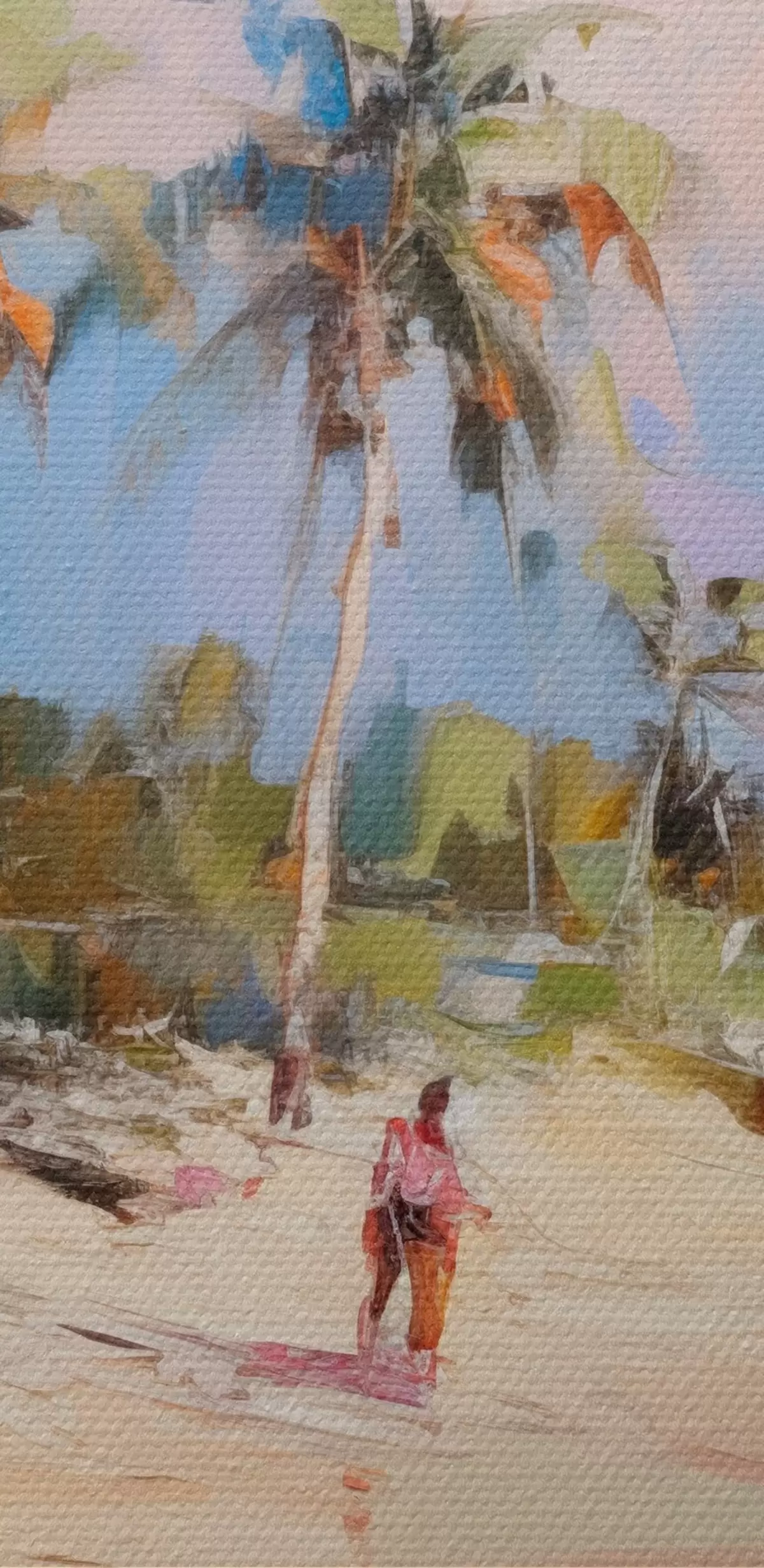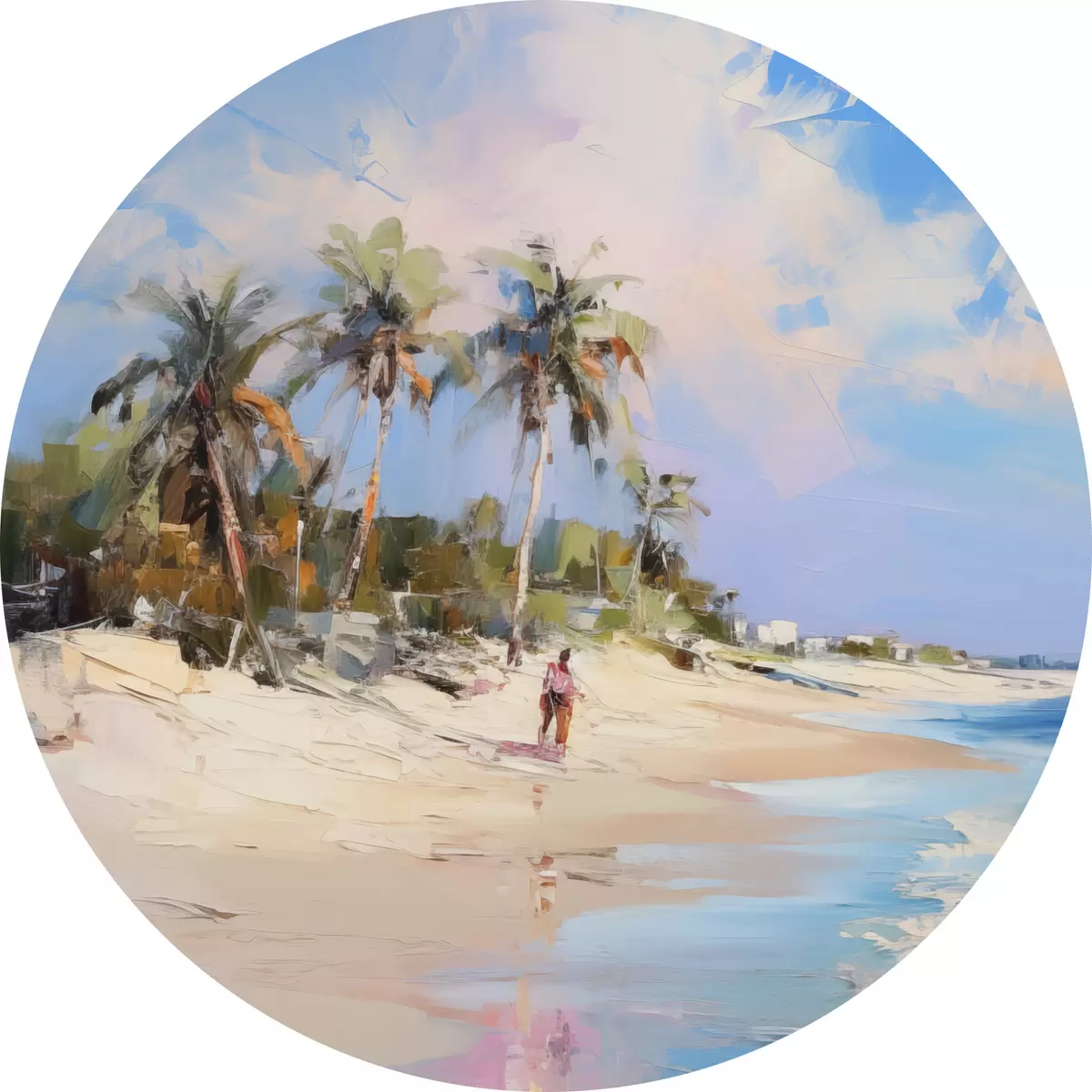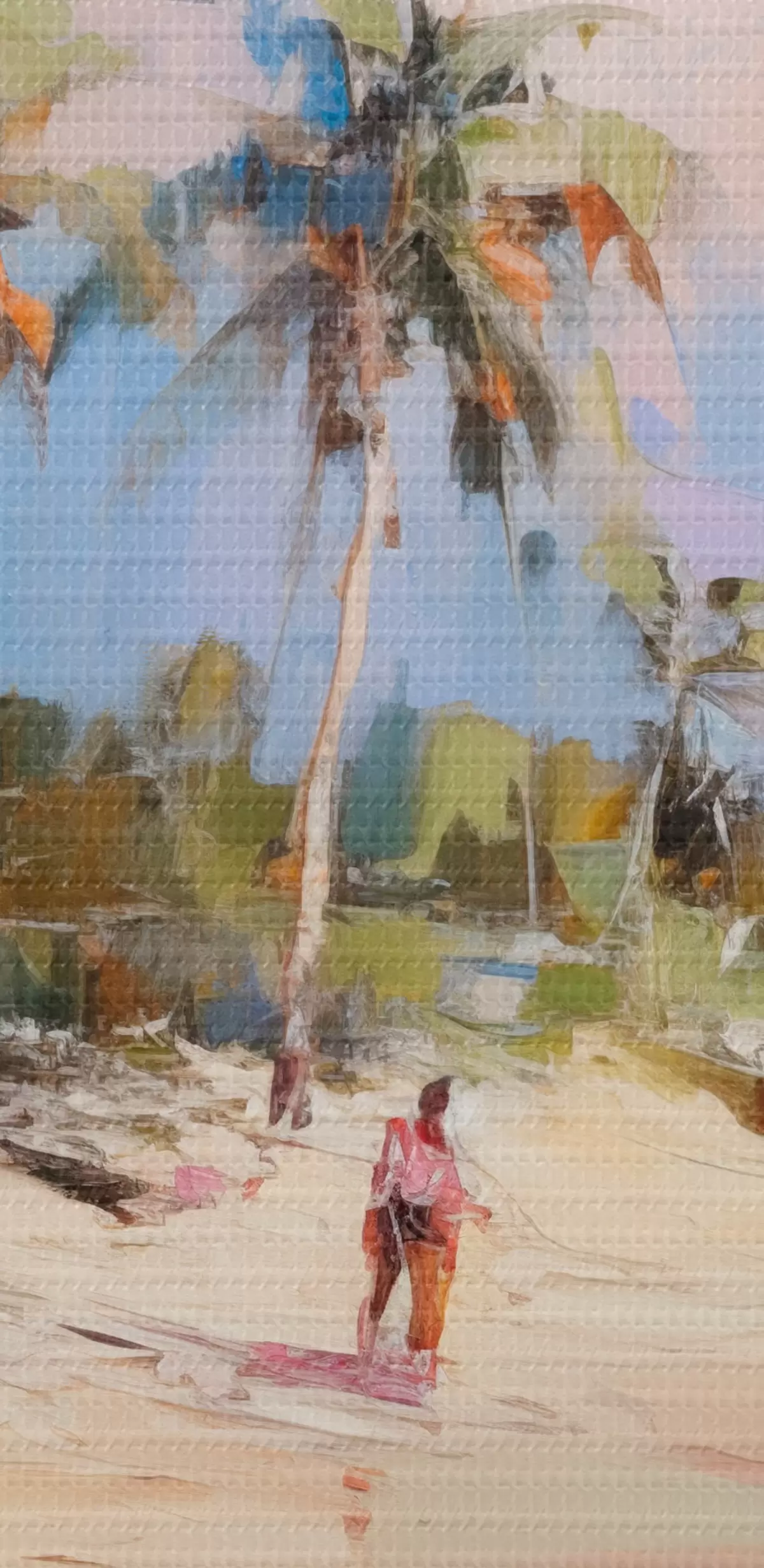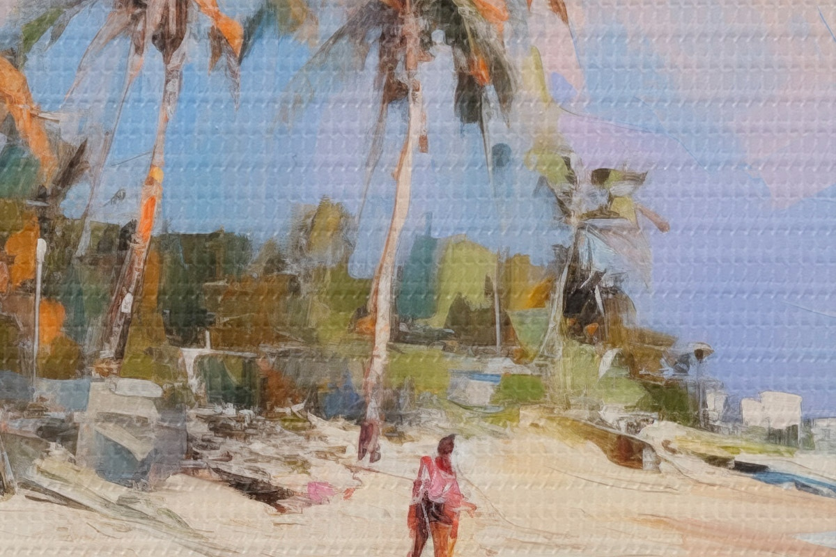 Obrázek Abstraktní krajina, pláž s palmami, jasný slunečný den s modrou oblohou a několika mraky Nr r46284