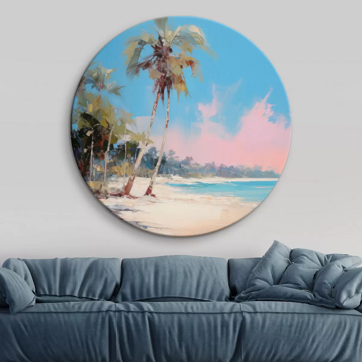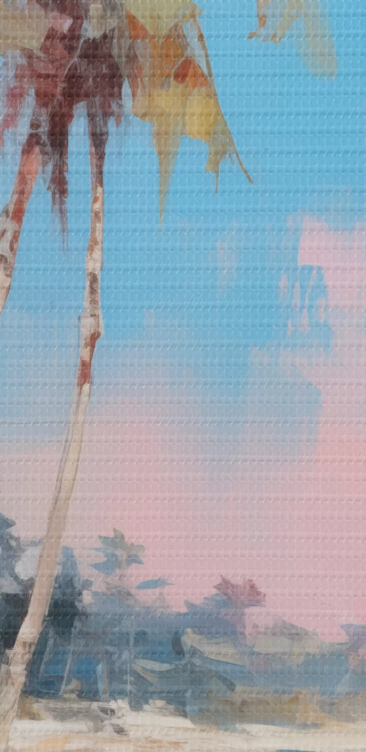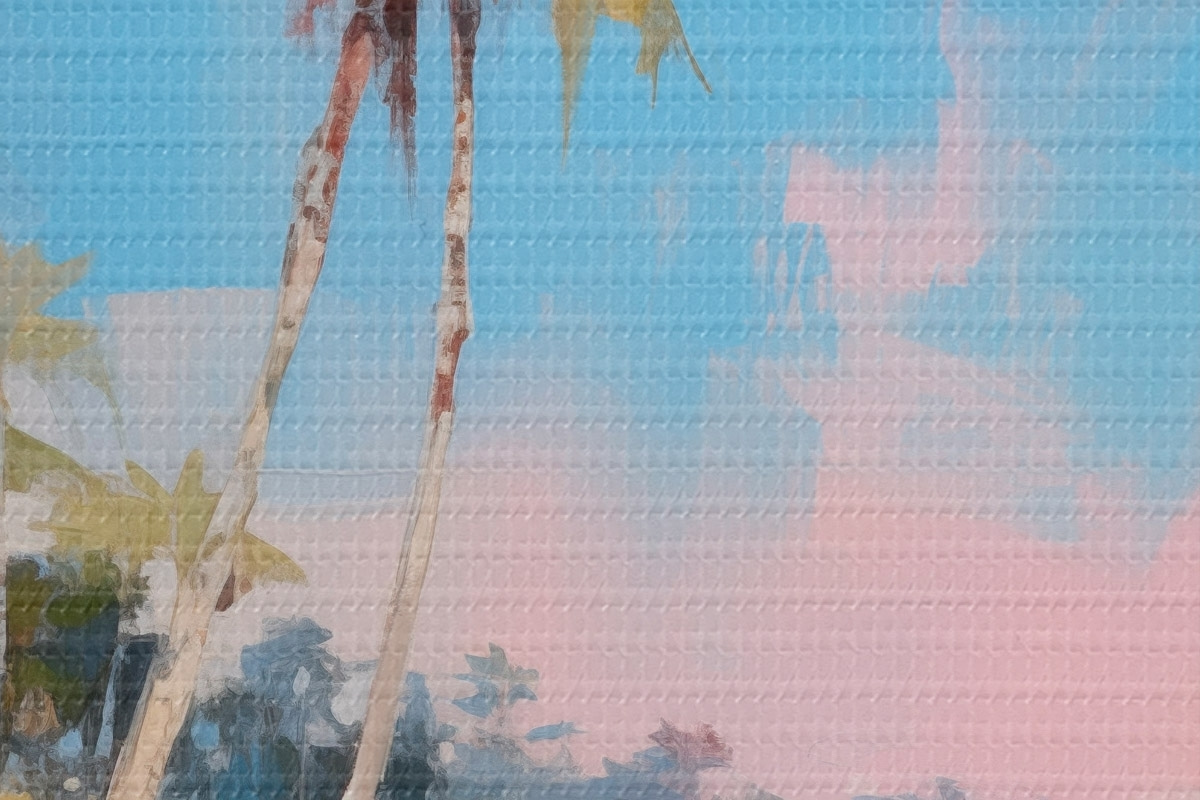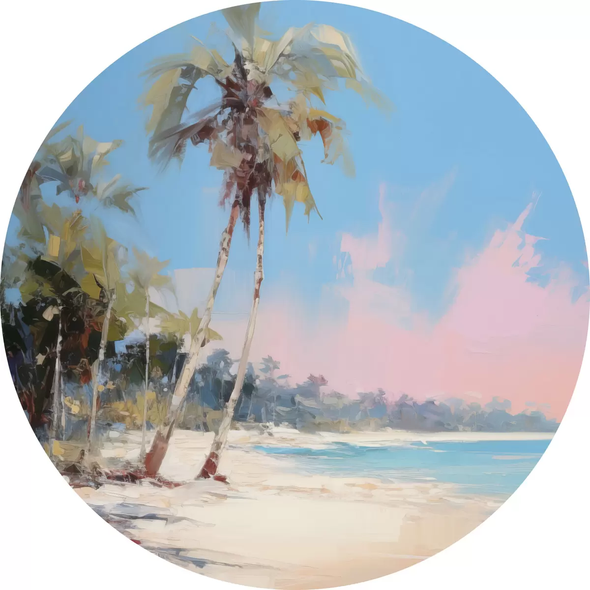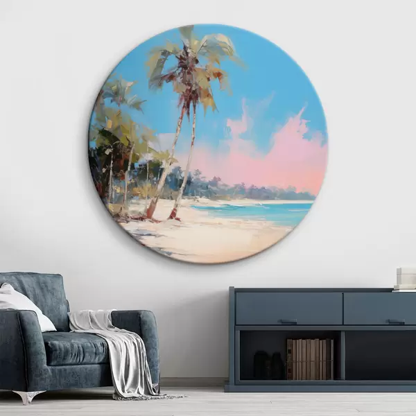 Obrázek Abstraktní tropická pláž s bílým pískem a palmami, modrá obloha s bílými mraky Nr r46285