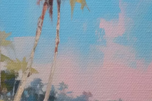 Obrázek Abstraktní tropická pláž s bílým pískem a palmami, modrá obloha s bílými mraky Nr r46285