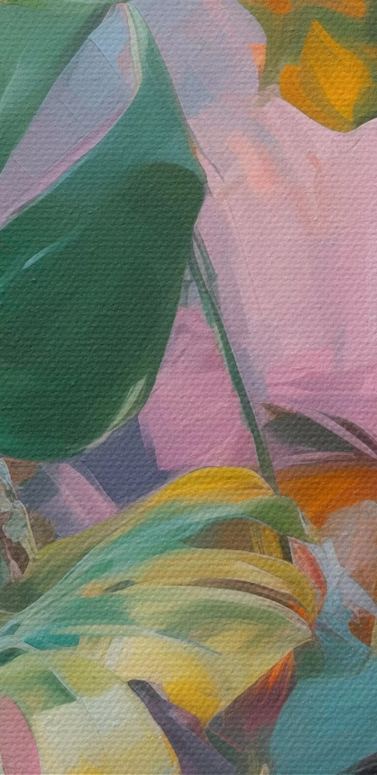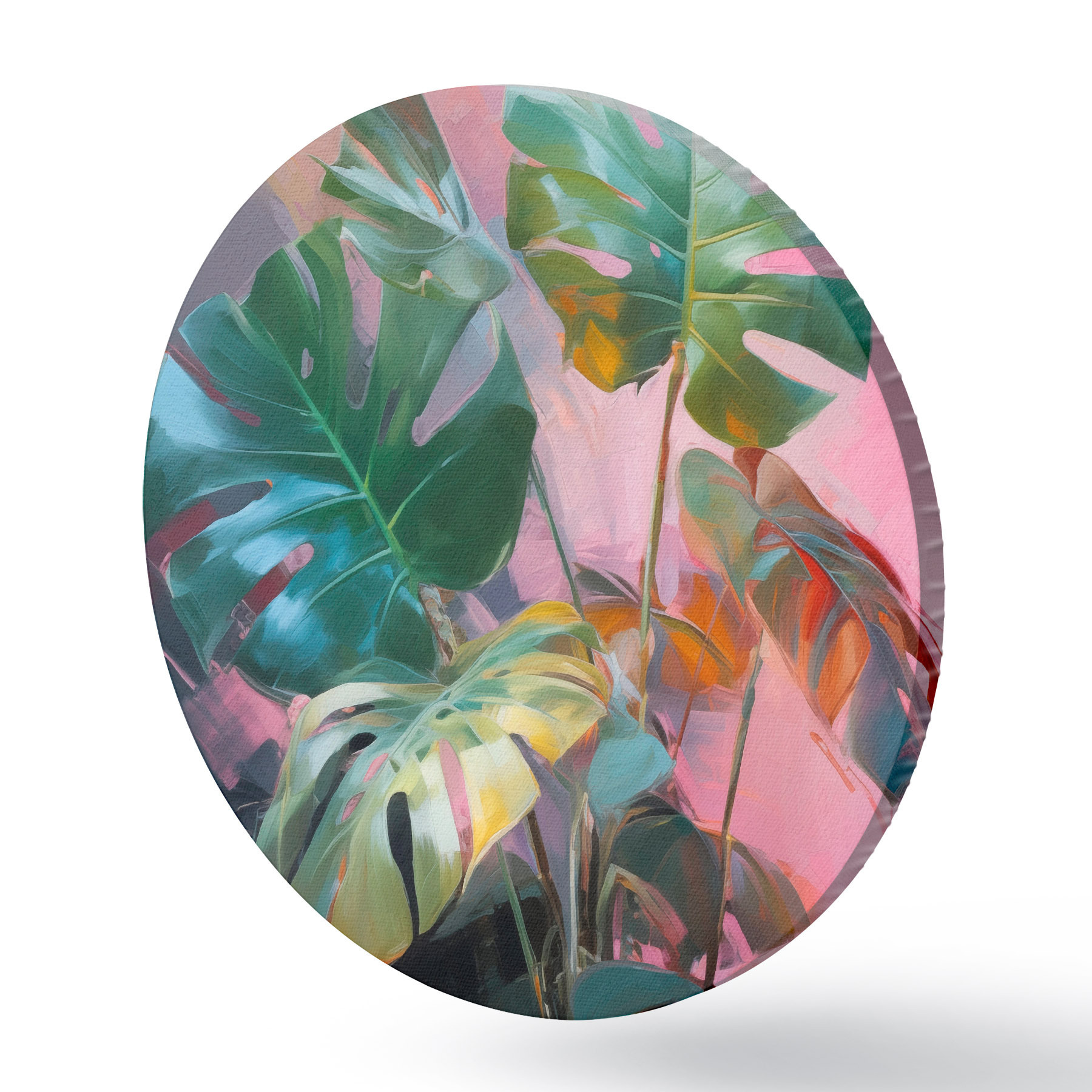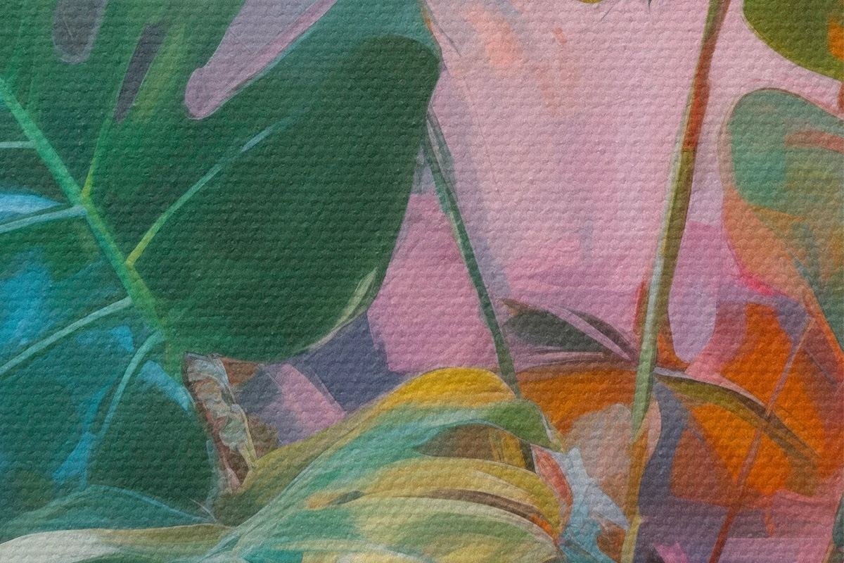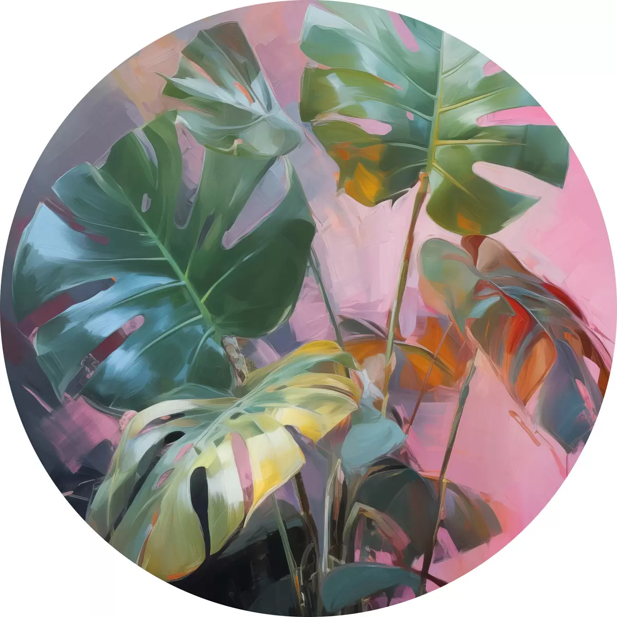 Obrázek Abstraktní rostlina monstera s jasně zelenými listy na pozadí jemných růžových a fialových odstínů Nr r46286