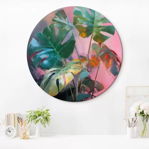 Obrázek Abstraktní rostlina monstera s jasně zelenými listy na pozadí jemných růžových a fialových odstínů Nr r46286