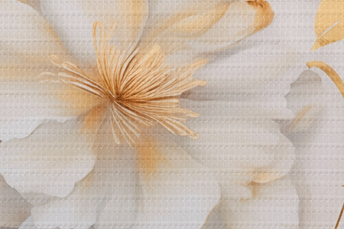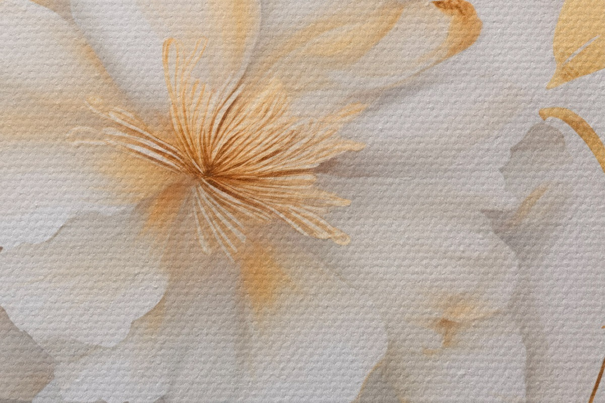 Obrázek Bílé květy se žlutými detaily, okvětní lístky s jemnými stíny, světlé pozadí s jemným mramorovým efektem Nr r46292