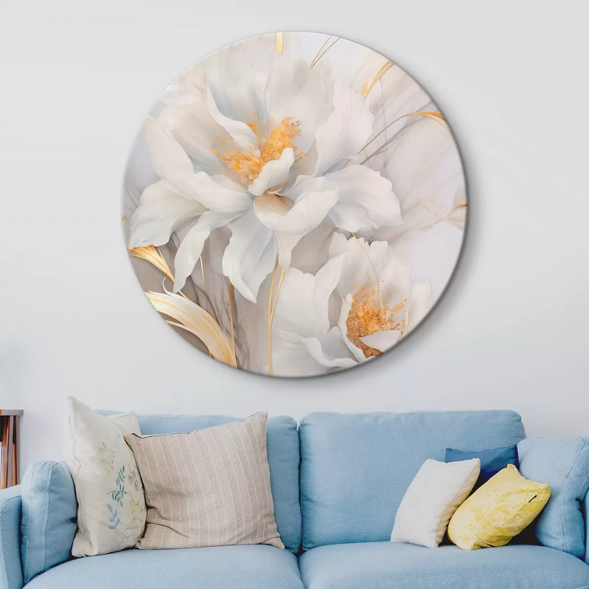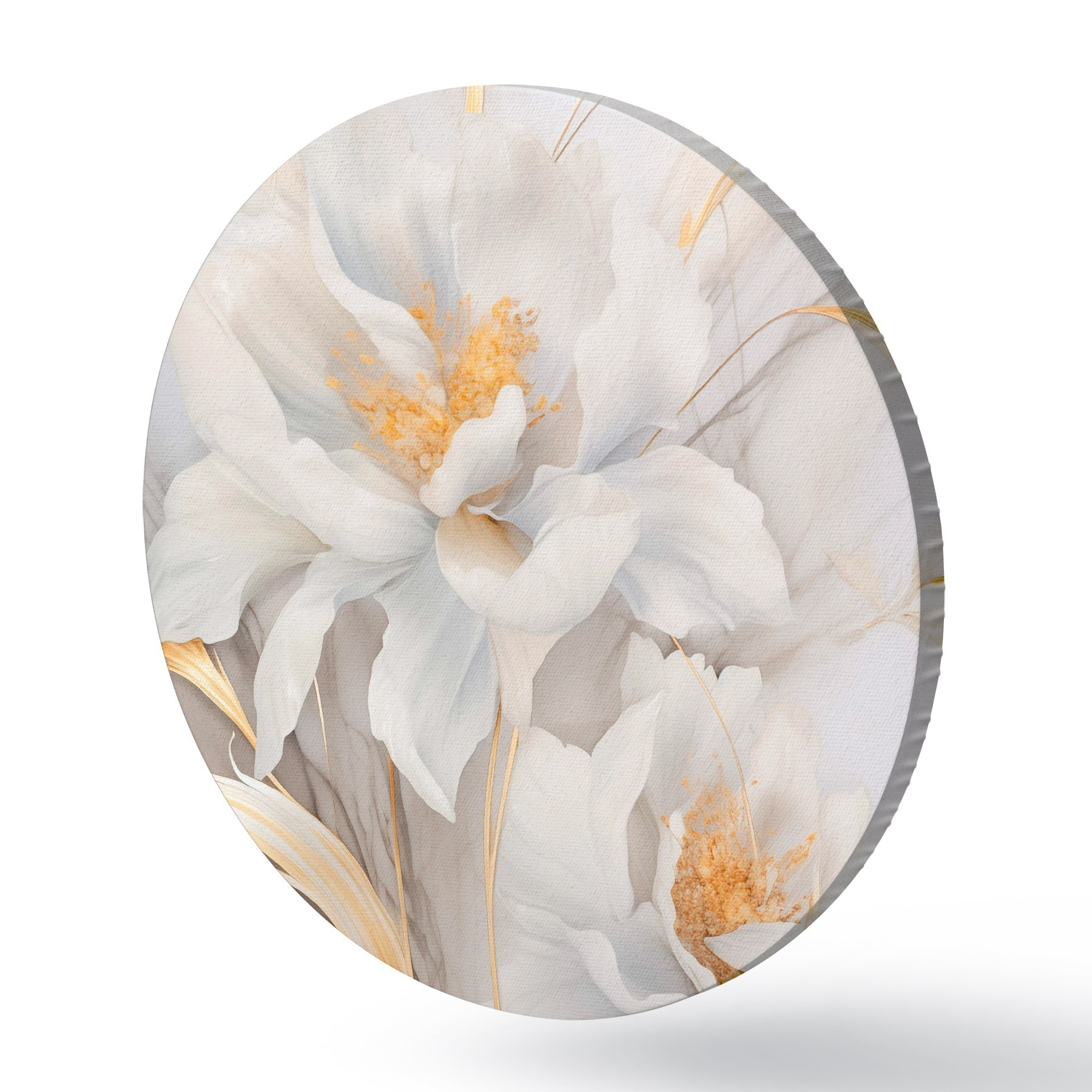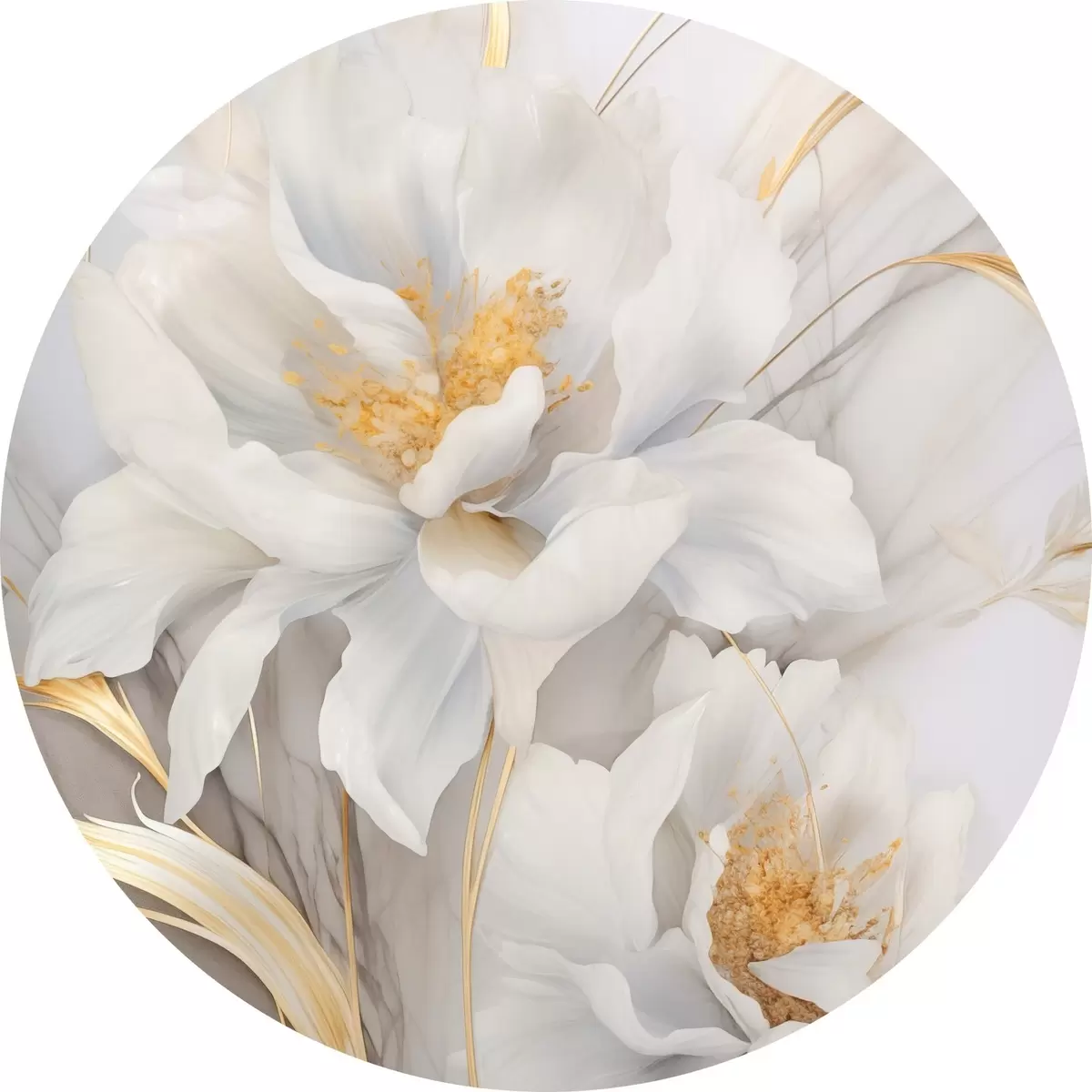 Obrázek Bílé květy se žlutými pestíky a stonky, jemné okvětní lístky, elegantní kompozice, neutrální pozadí Nr r46293