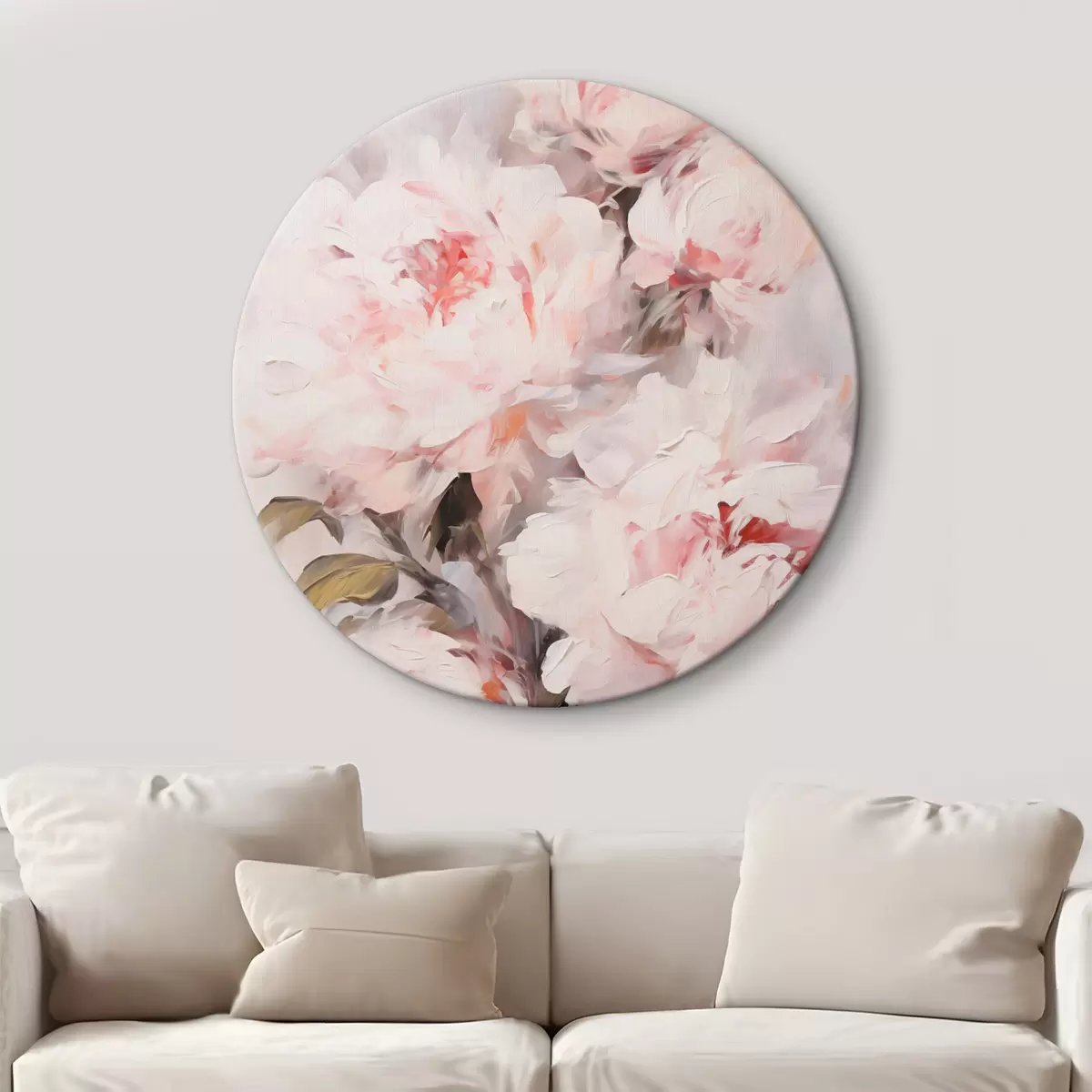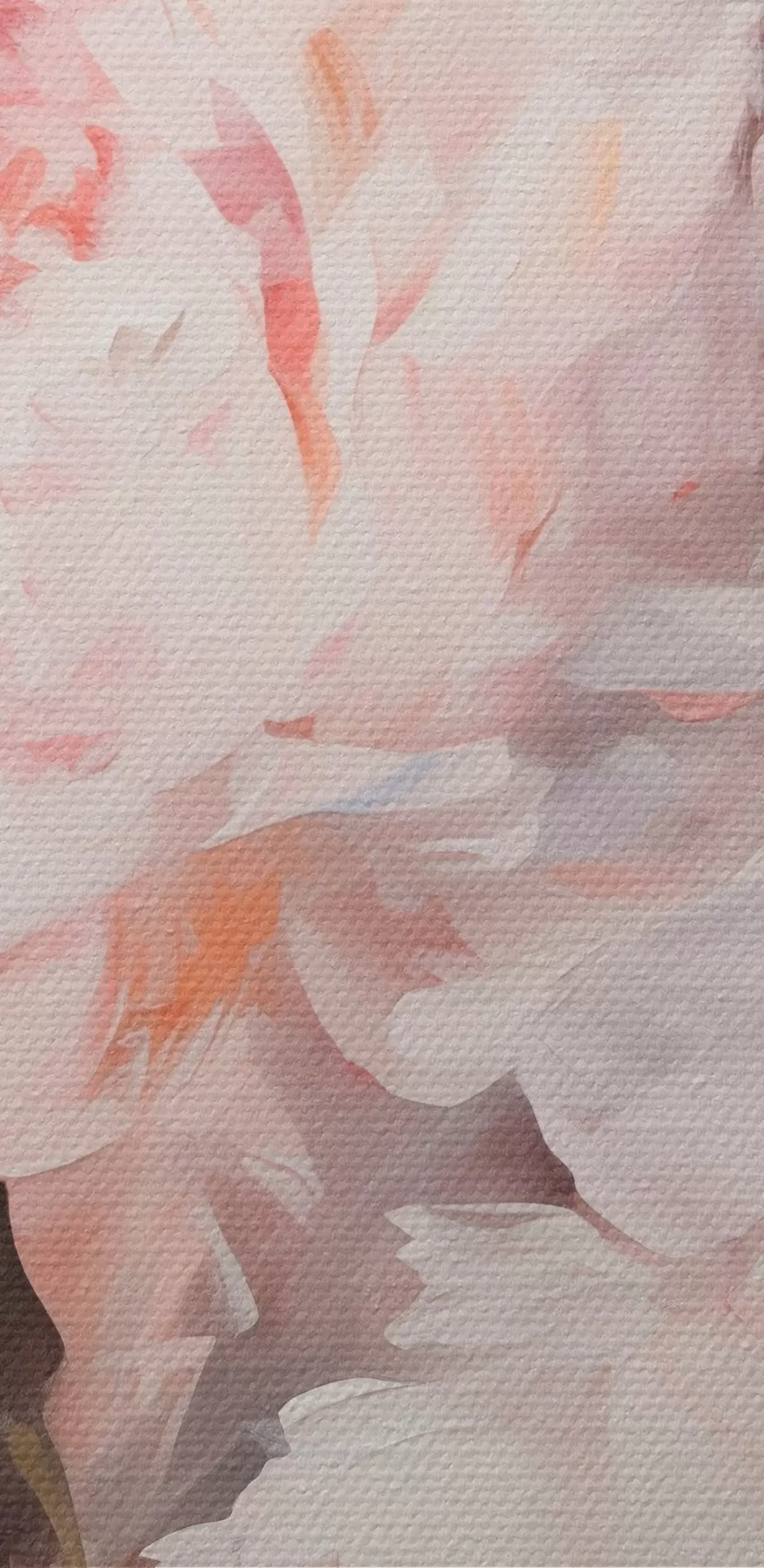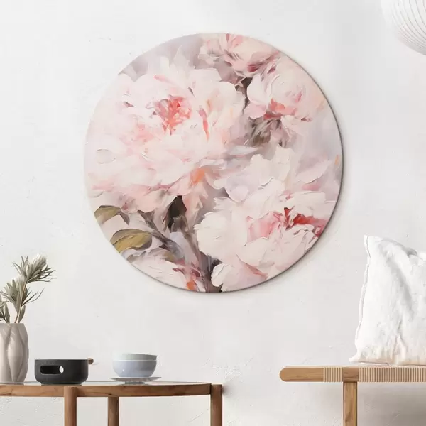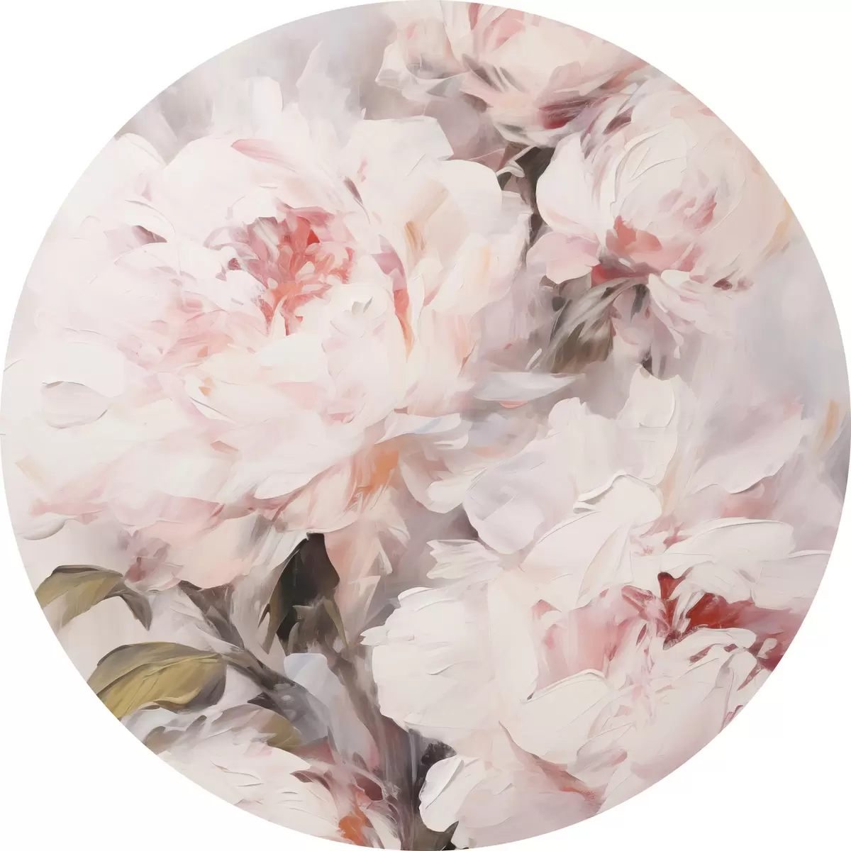 Obrázek Kytice světle růžových pivoněk se zelenými listy, jemné tahy štětcem, pastelové barvy, na světlém pozadí Nr r46294