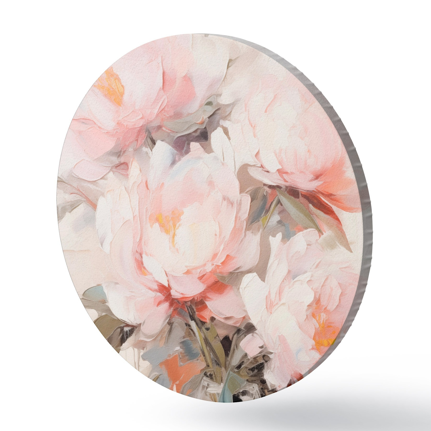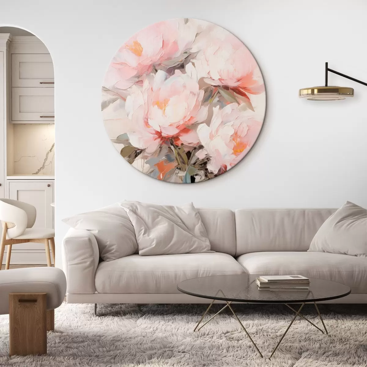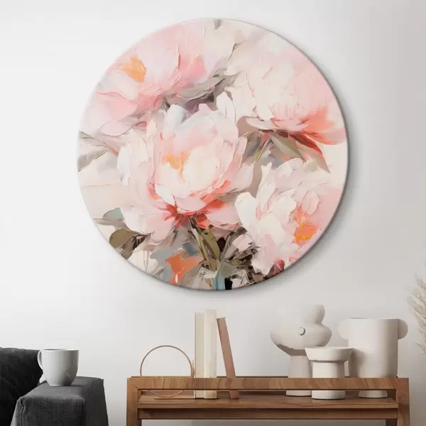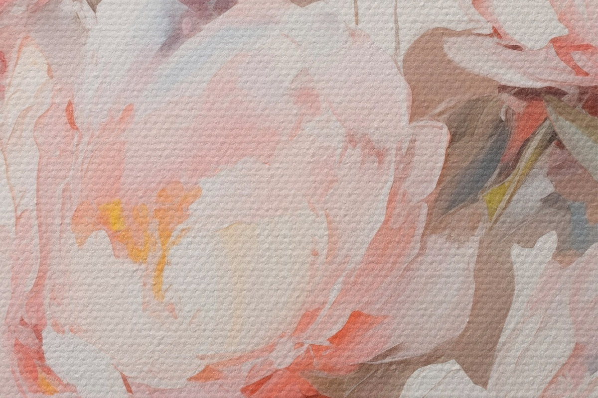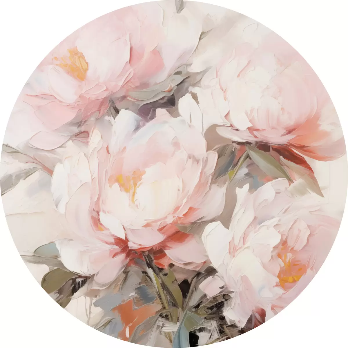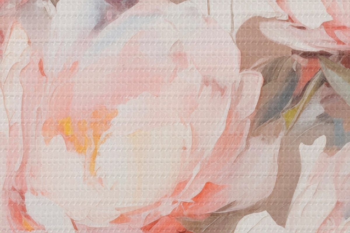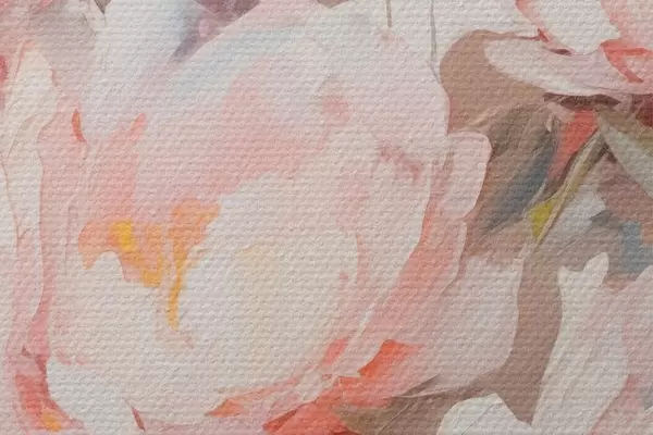 Obrázek Kytice růžových a bílých pivoněk ve skleněné váze, jemné tahy štětcem, pastelové barvy, neutrální pozadí Nr r46295