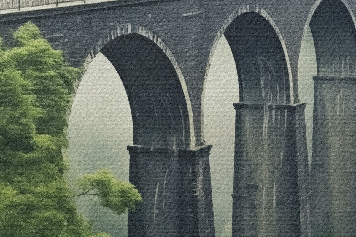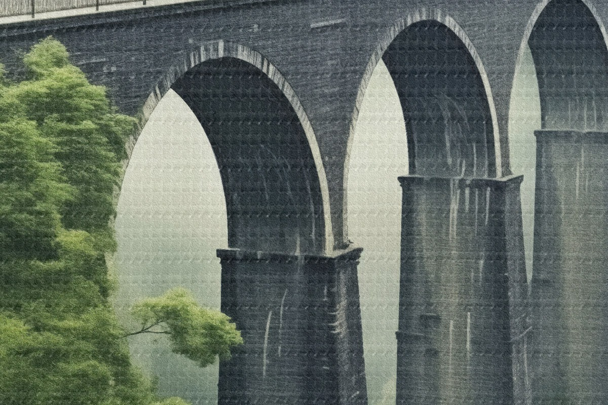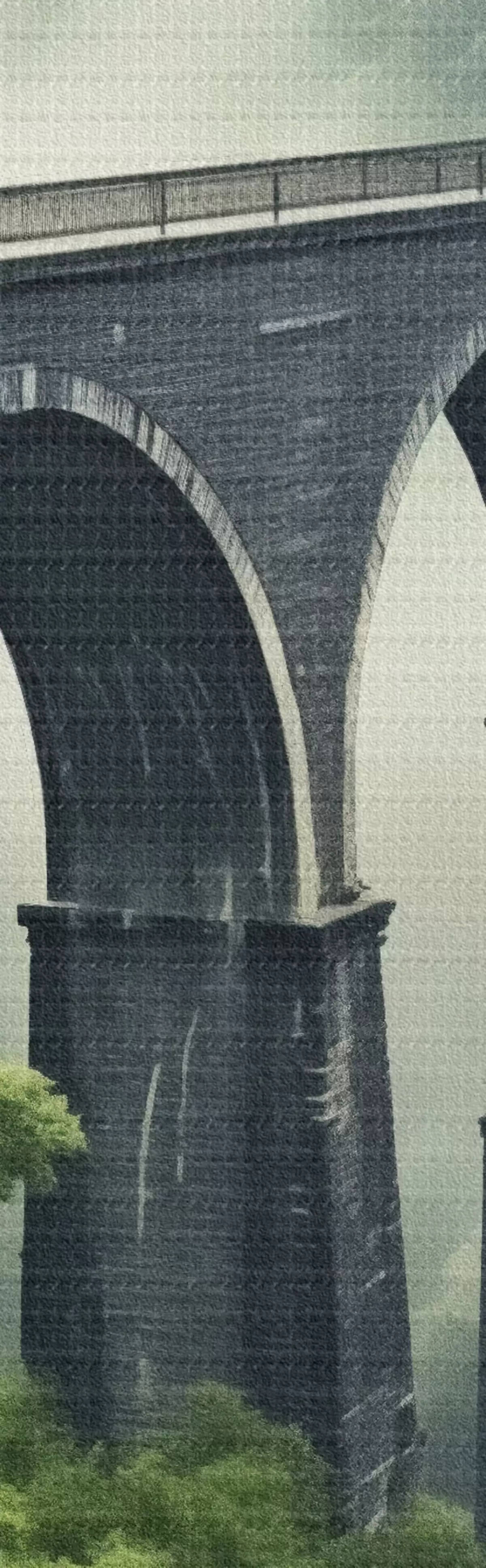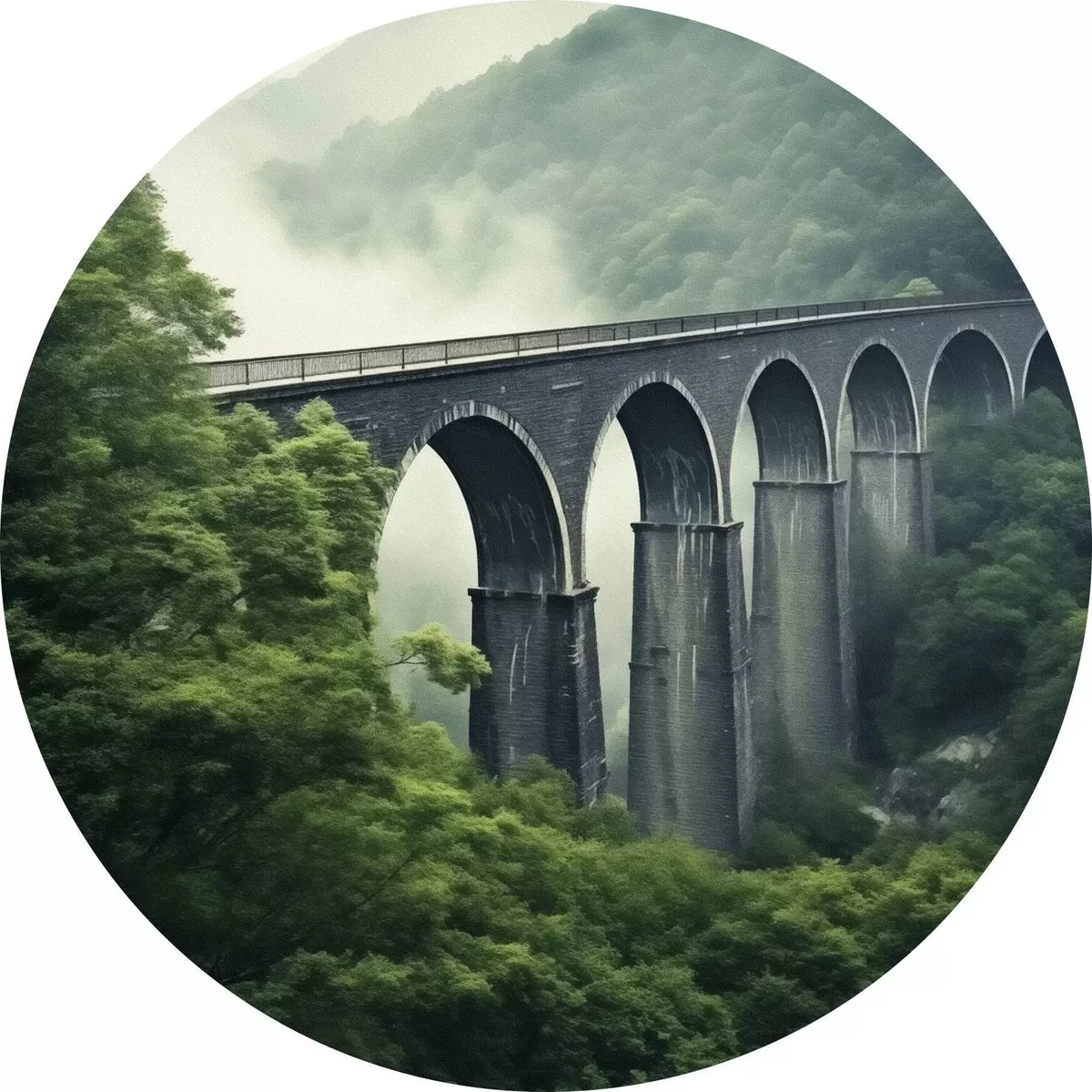 Obrázek Kamenný viadukt nad zamlženým zalesněným údolím Nr r46483