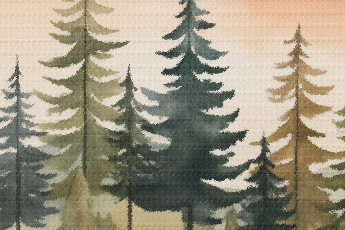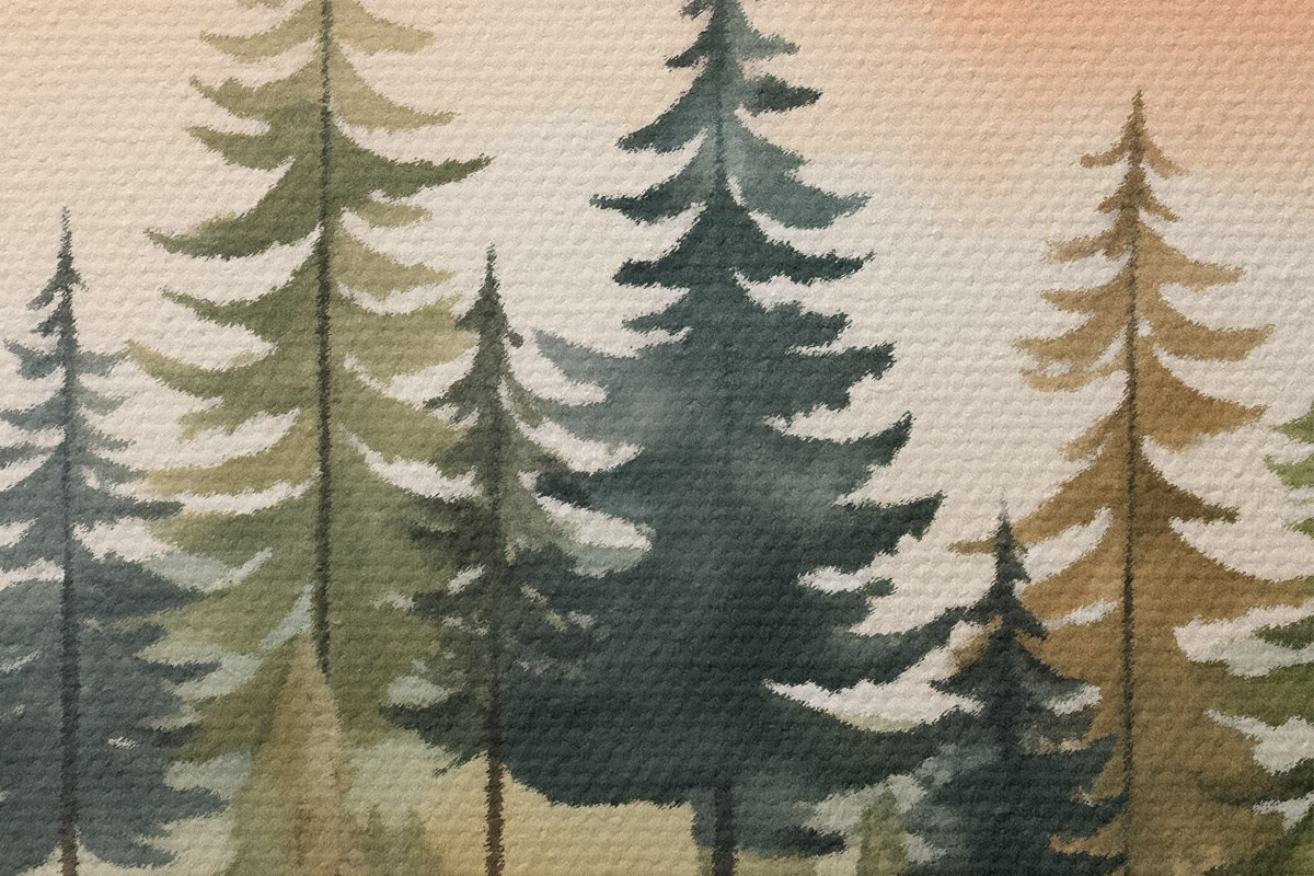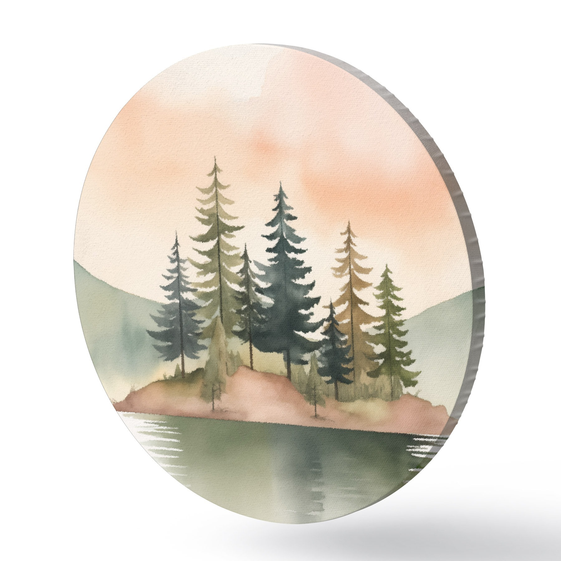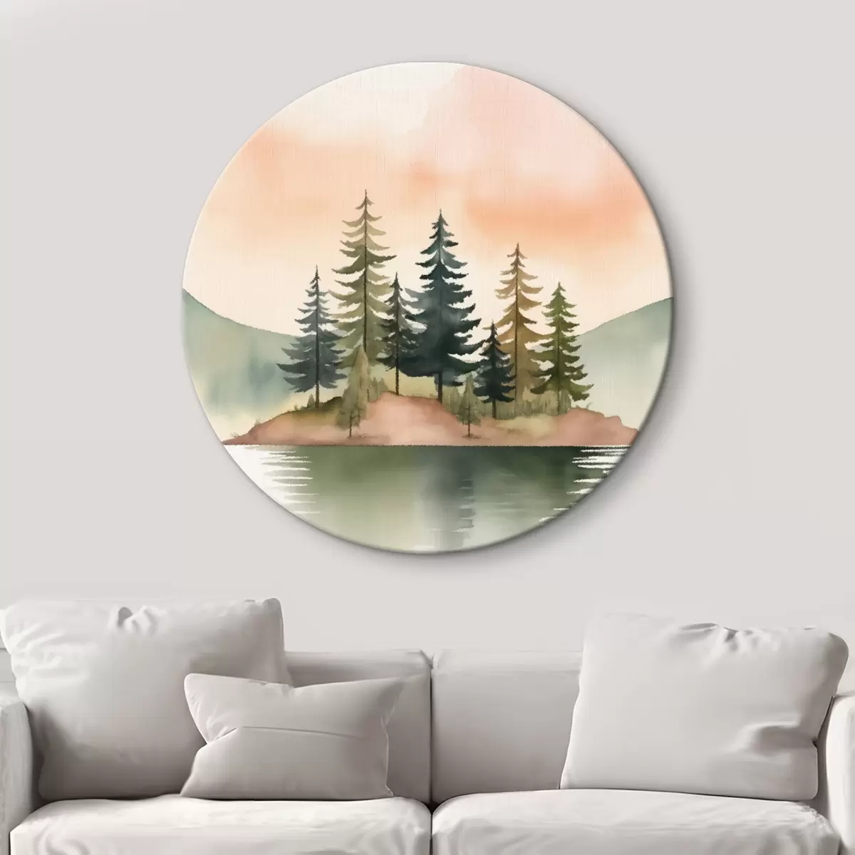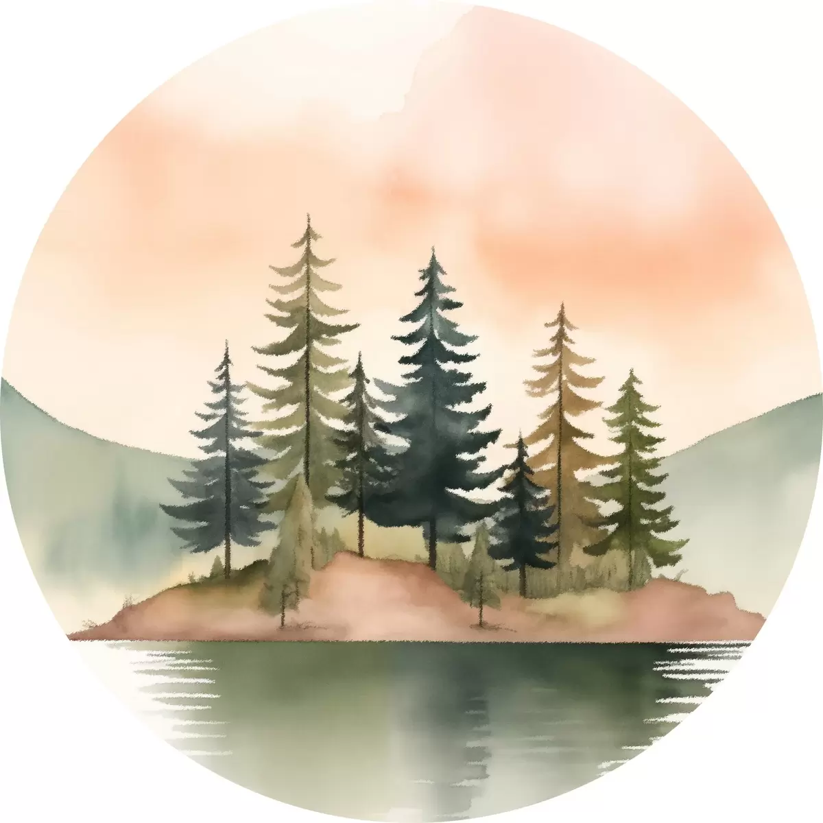 Obrázek Akvarelové borovice na zamlženém ostrůvku, jemně broskvová obloha Nr r46505