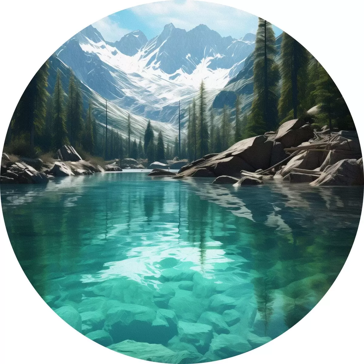Obrázek Čistá alpská řeka se skalnatým dnem a zasněženými vrcholky Nr r46514