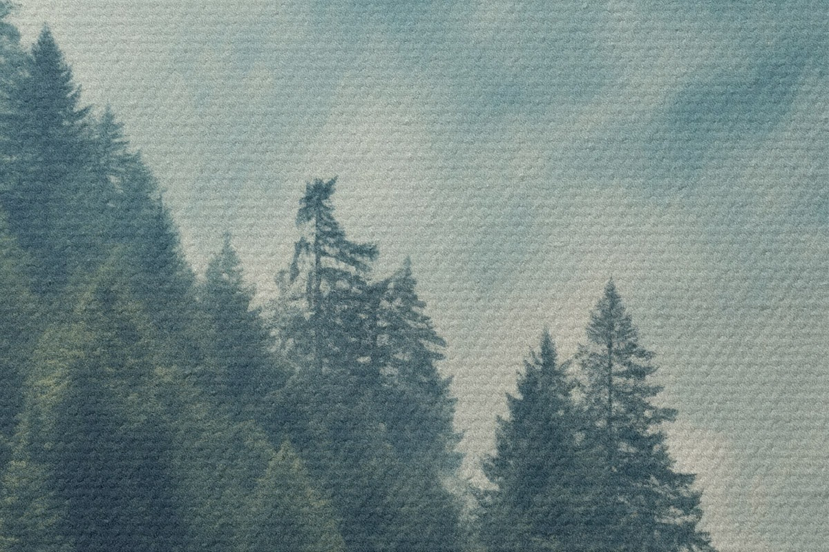 Obrázek Zamlžené horské hřebeny a temný jehličnatý les Nr r46518