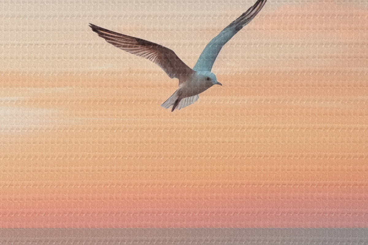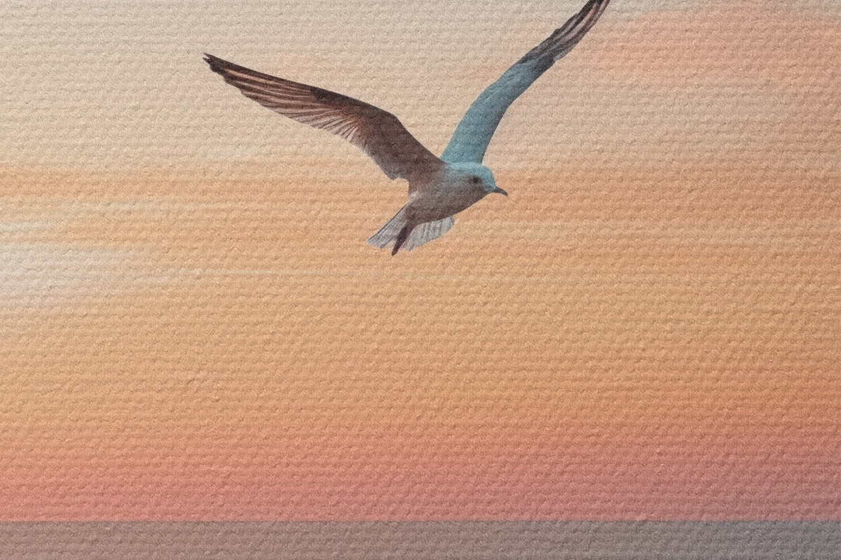 Obrázek Racek nad mořem při růžovo-broskvovém západu slunce Nr r46520