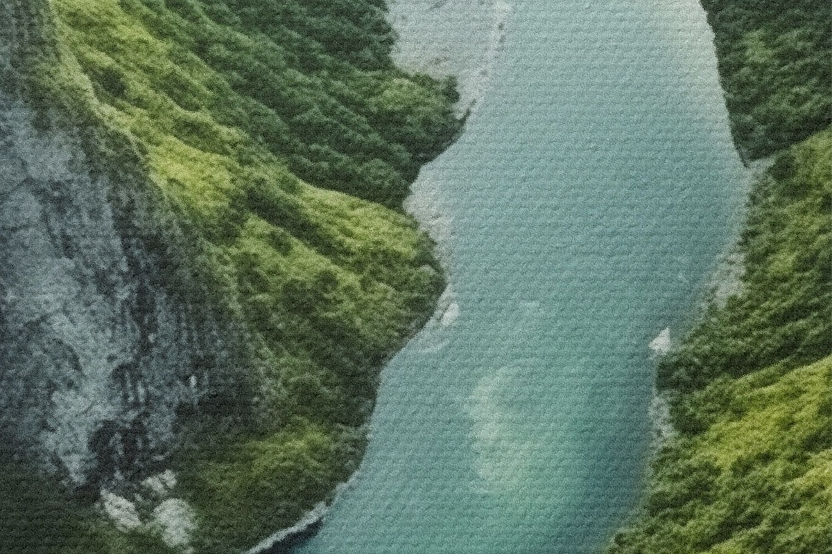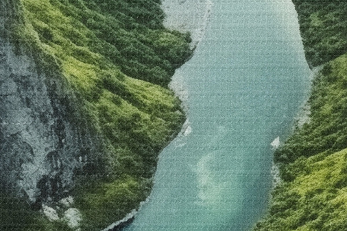 Obrázek Meandrující řeka mezi útesy, pohled z ptačí perspektivy Nr r46521