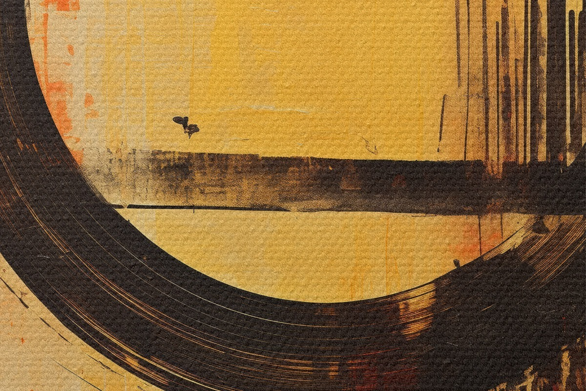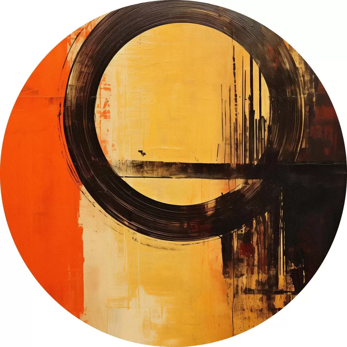 Obrázek Abstraktní motiv s černým prstencem na terakotově-pískovém pozadí Nr r46529