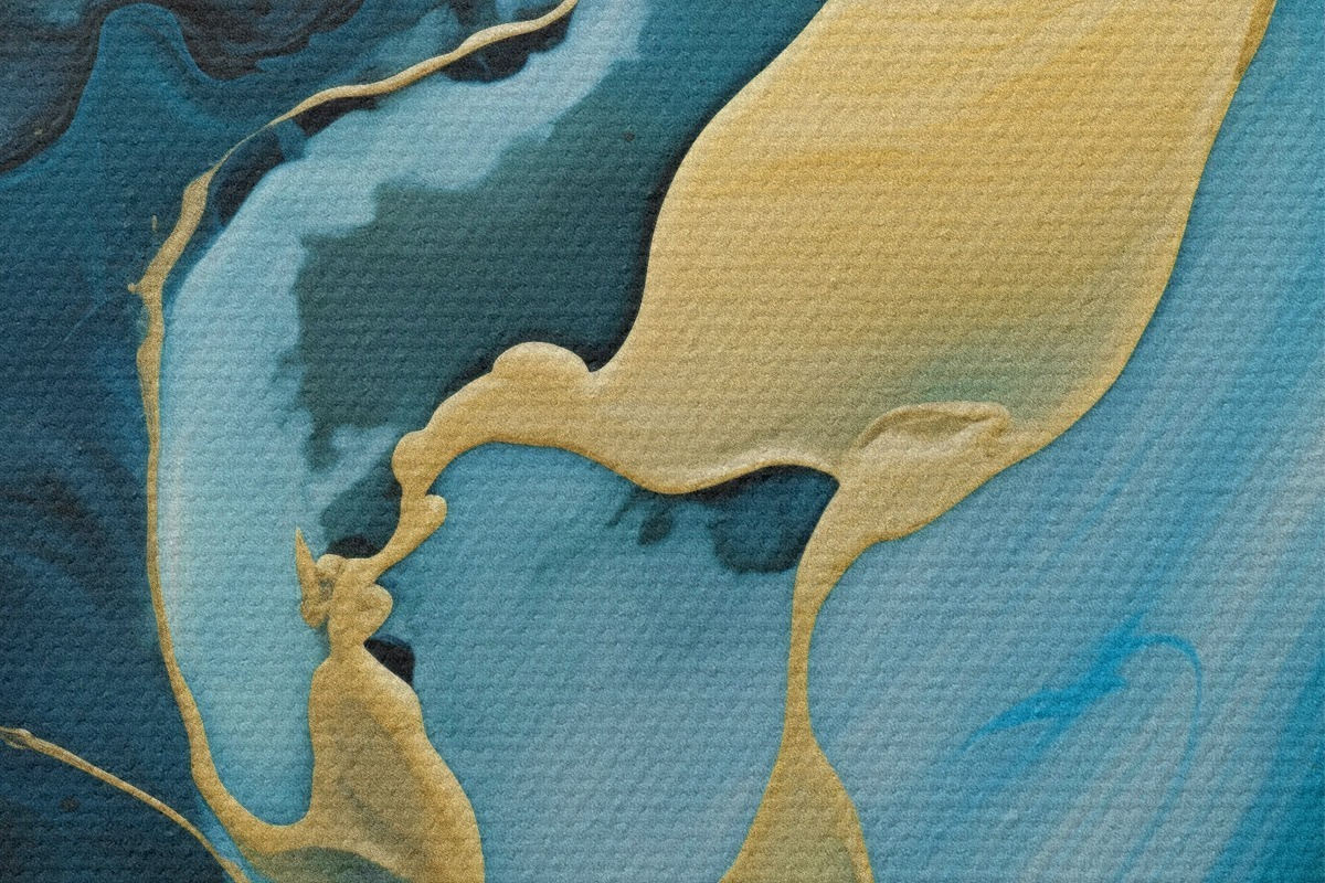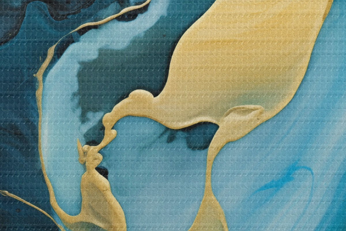 Obrázek Modrozelený abstraktní vzor s okrovým pruhem Nr r46530