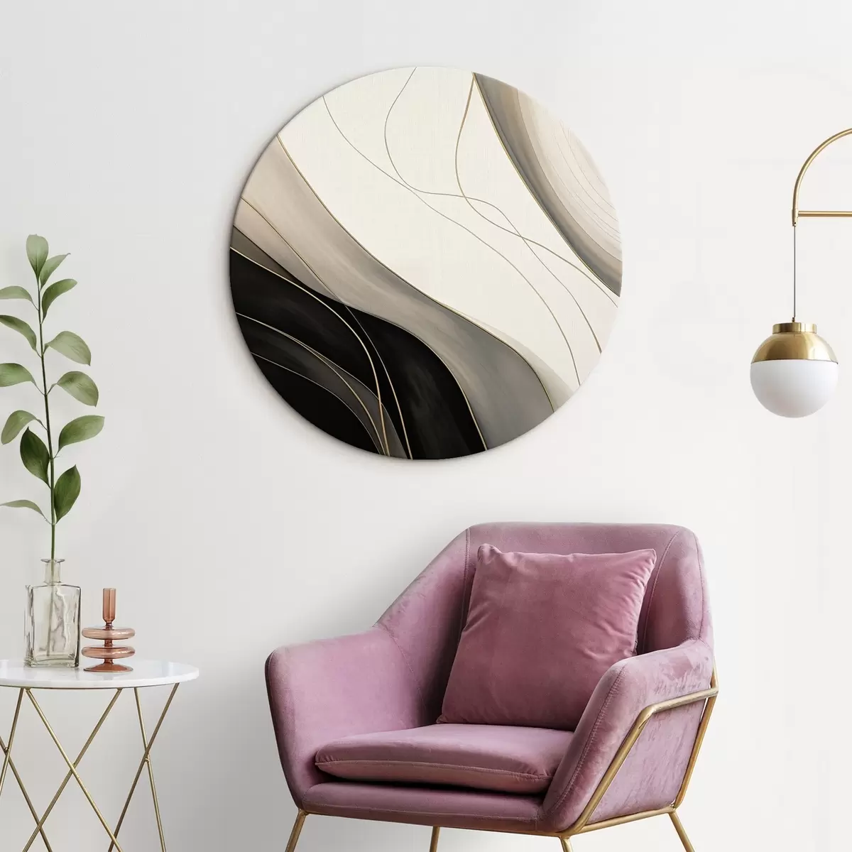 Obrázek Vlny v černé a béžové barvě s jemnými okrovými linkami Nr r46541