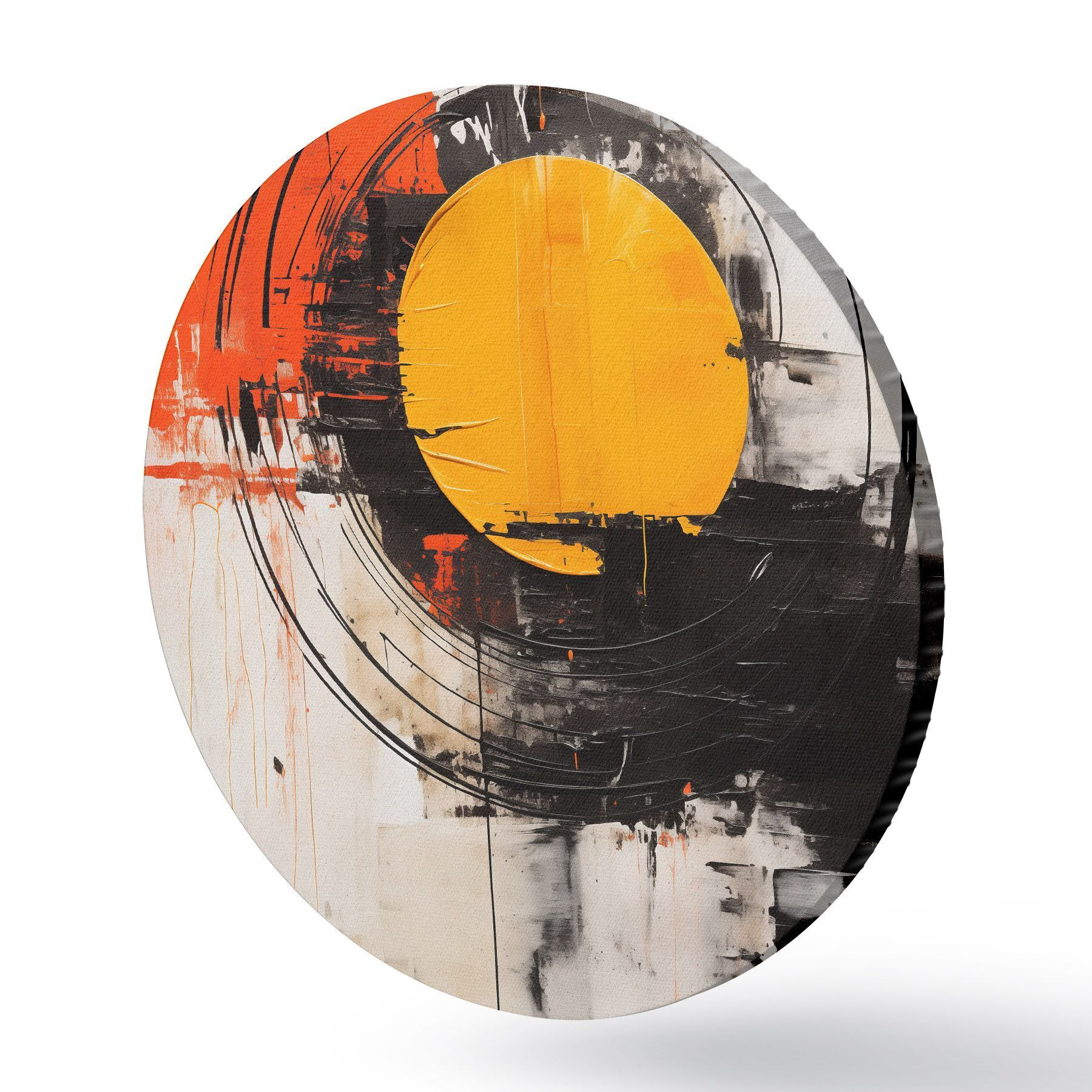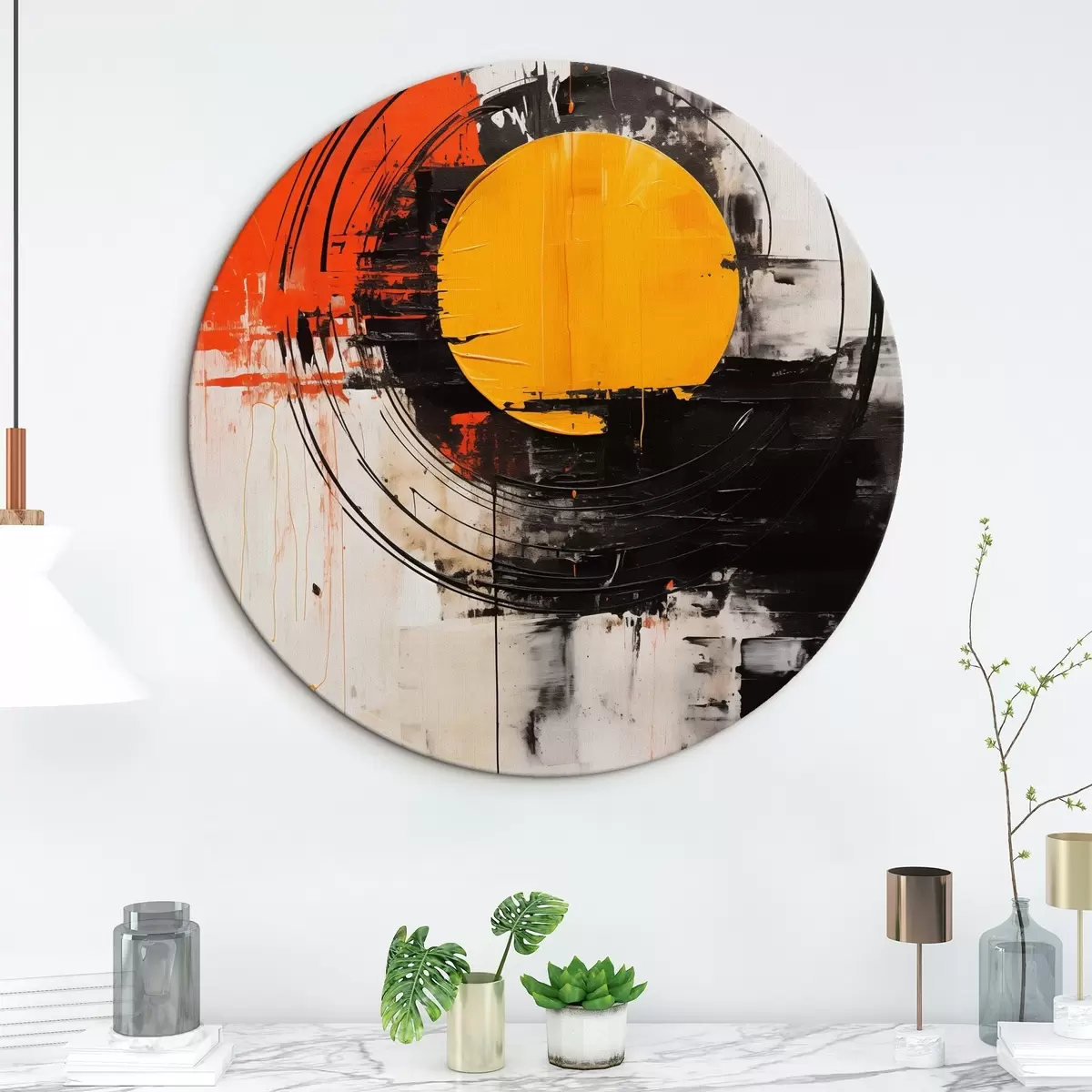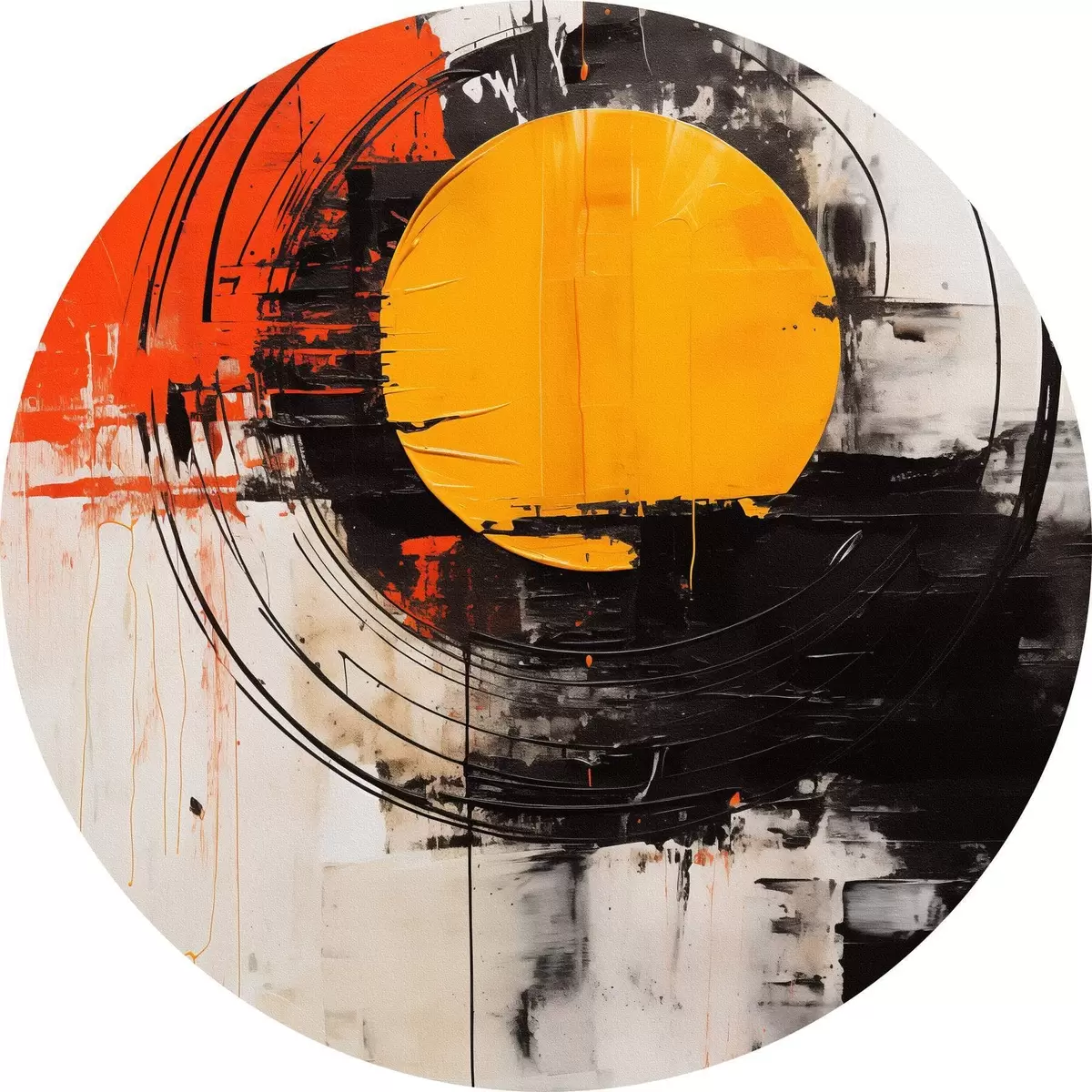 Obrázek Oranžový disk v černém kruhu, tahy a skvrny Nr r46550