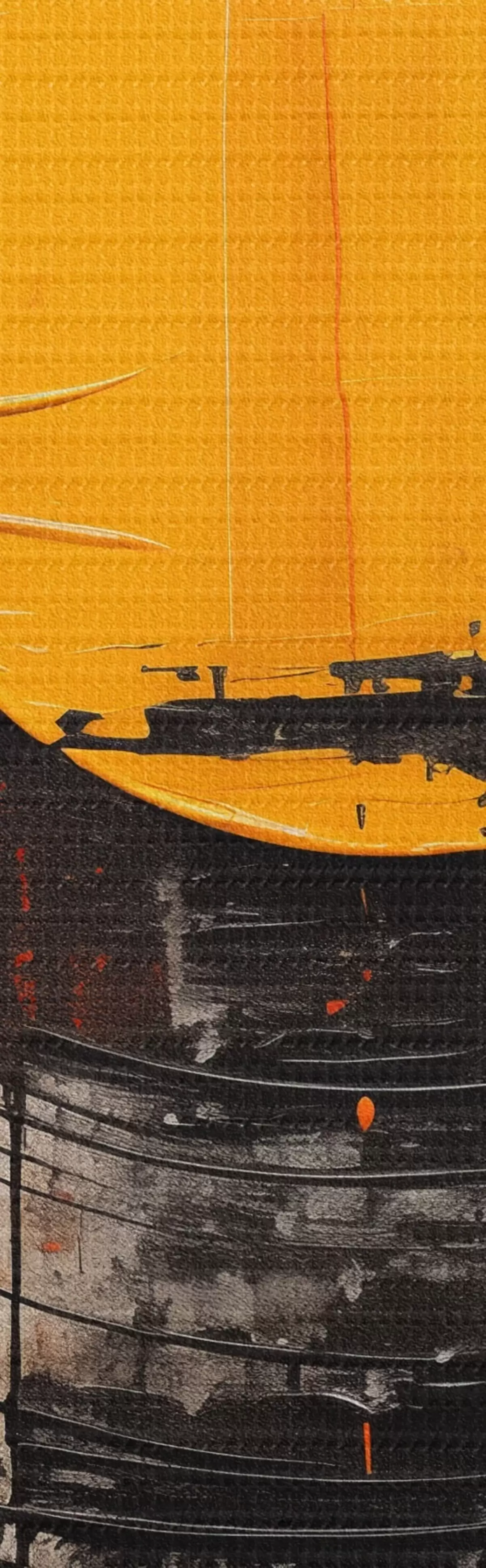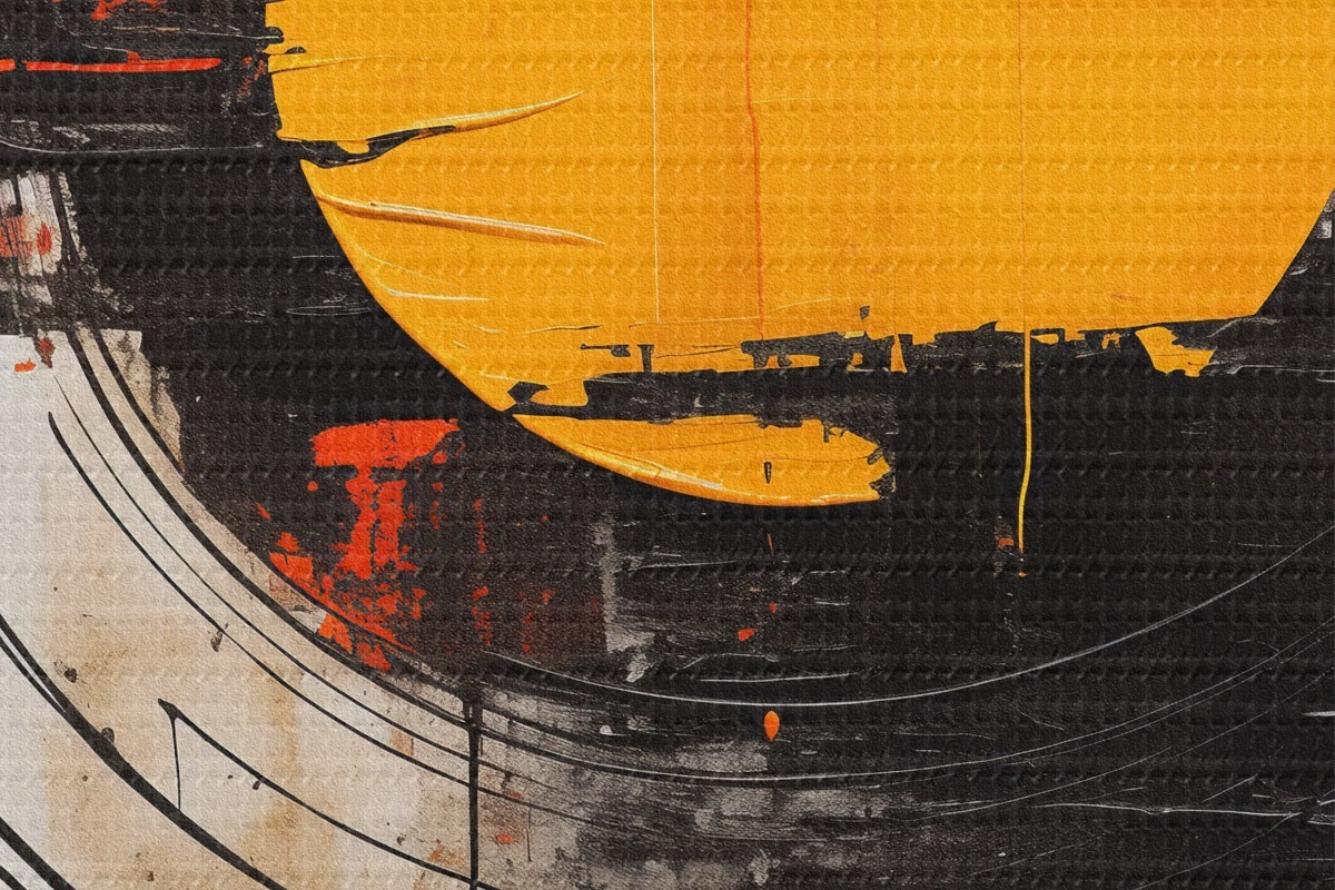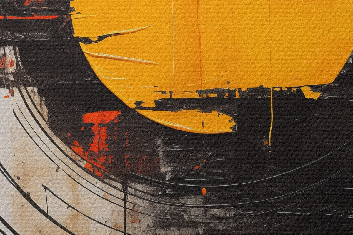 Obrázek Oranžový disk v černém kruhu, tahy a skvrny Nr r46550