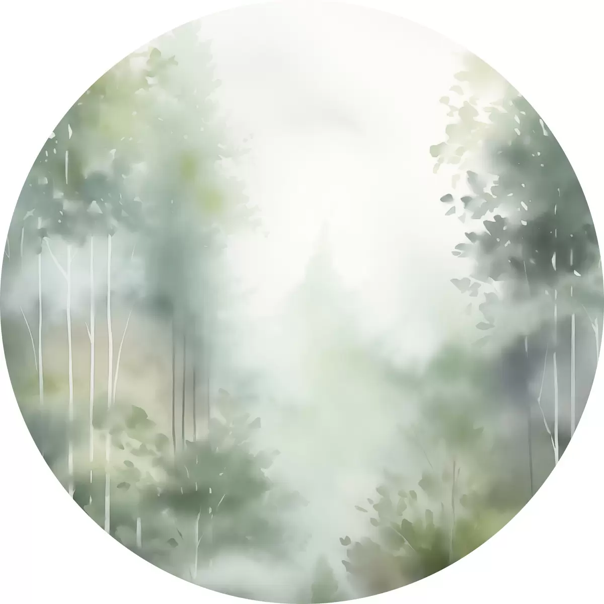 Obrázek Akvarelová malba imitující abstraktní les s vysokými stromy a zeleným listovím, jemné tlumené barvy Nr r46689