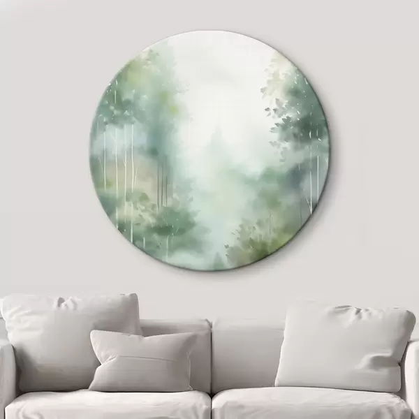 Obrázek Akvarelová malba imitující abstraktní les s vysokými stromy a zeleným listovím, jemné tlumené barvy Nr r46689