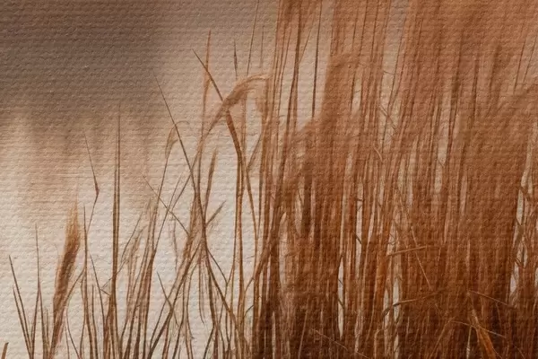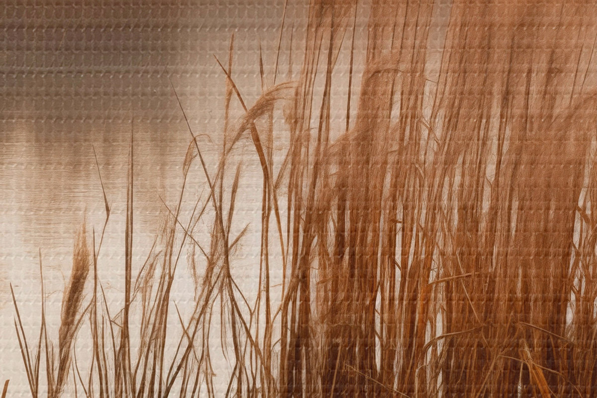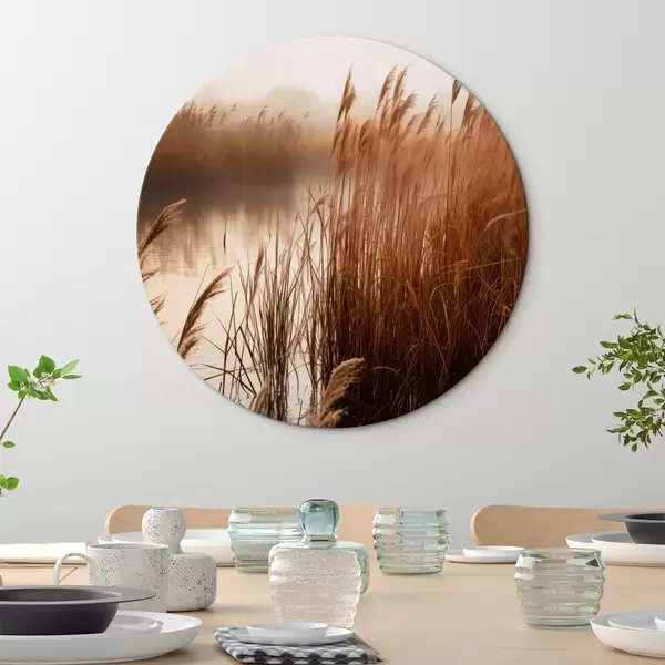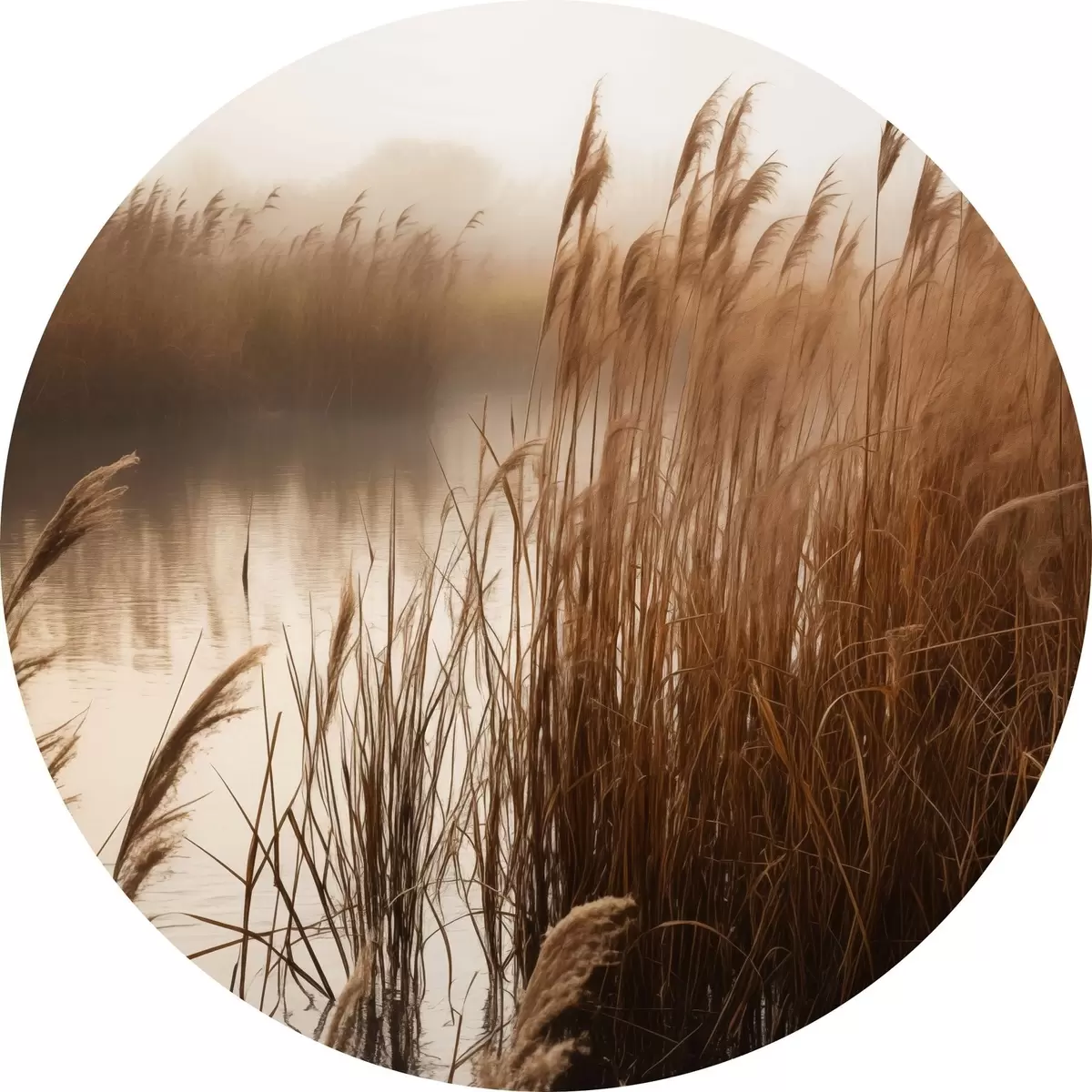 Obrázek Vysoké rákosí rostoucí ve vodní ploše, voda odráží rákosí, mlhavé pozadí, měkké světlo, přírodní scéna Nr r46695