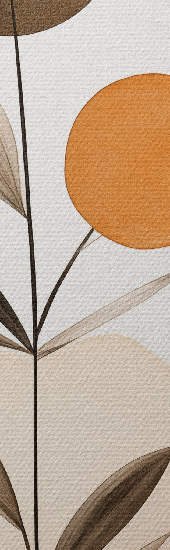 Obrázek Abstraktní malba s oranžovými a šedými kruhy, listy a větvemi, moderní styl, akvarelový efekt Nr r46698