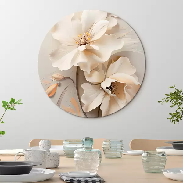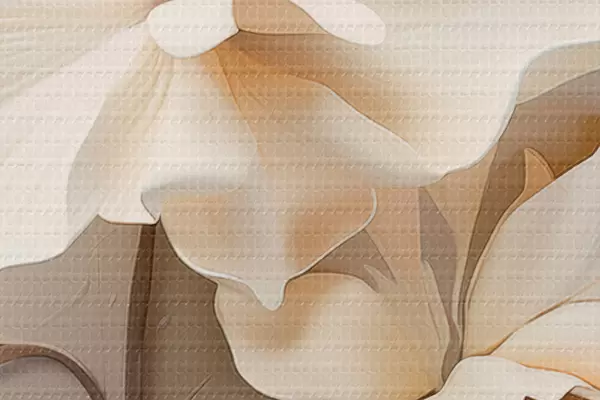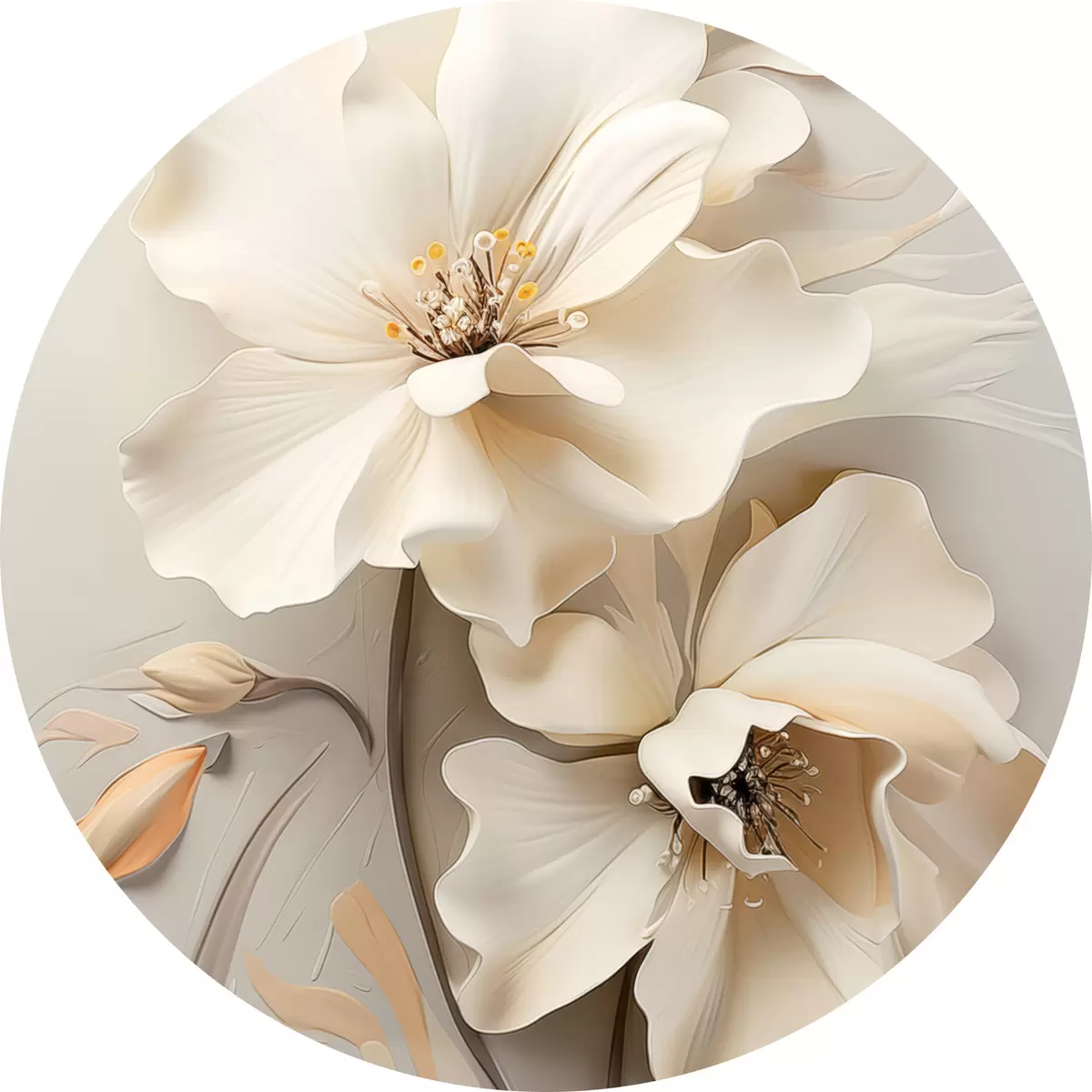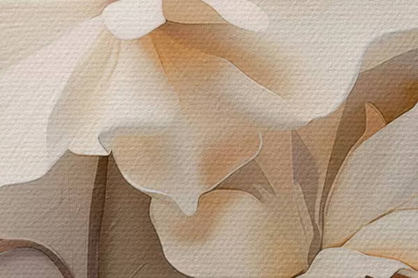 Obrázek Bílé květy, okvětní lístky s jemnými stíny, světle béžové pozadí, elegantní kompozice, minimalistický styl Nr r46700