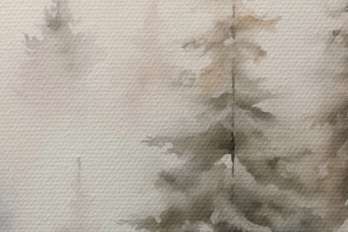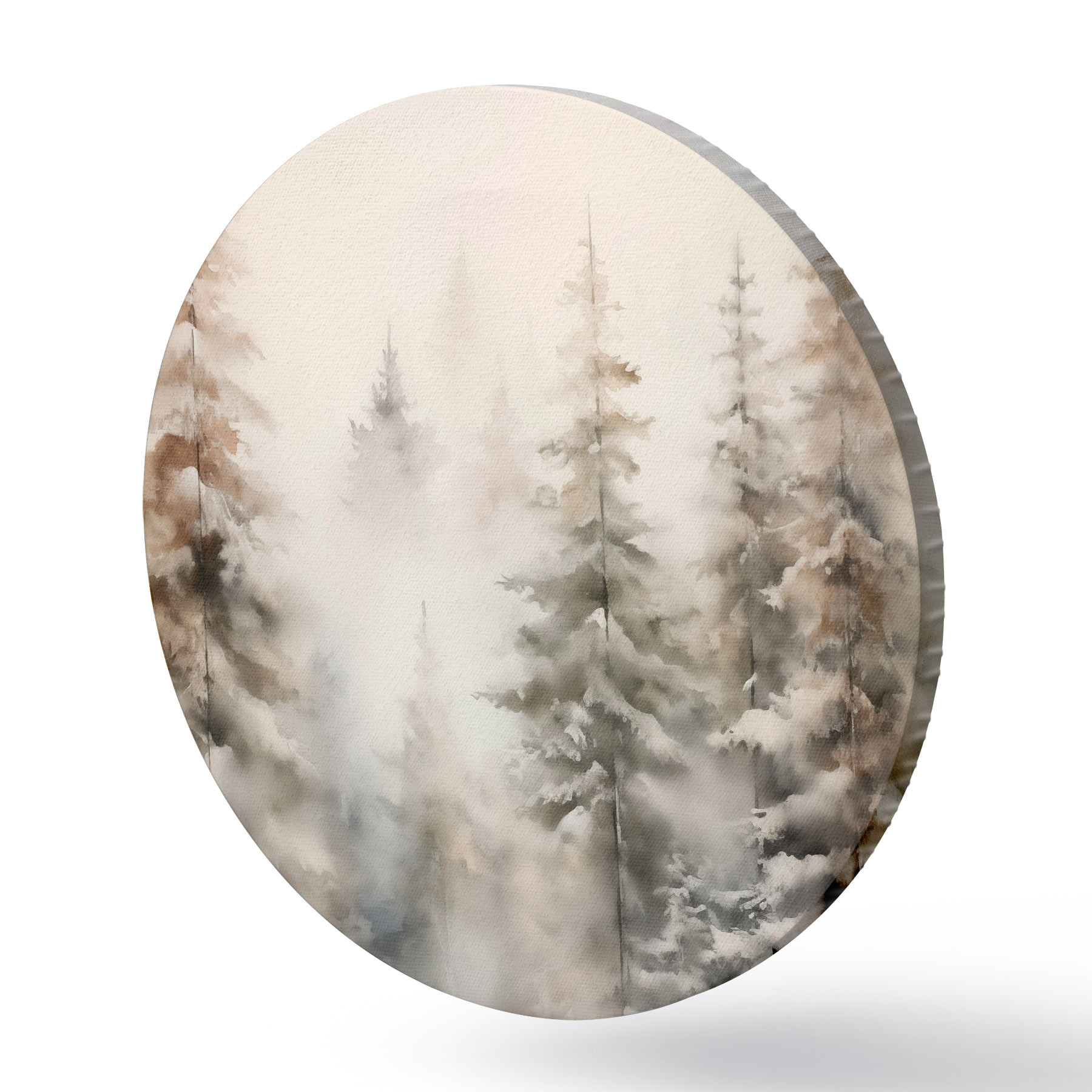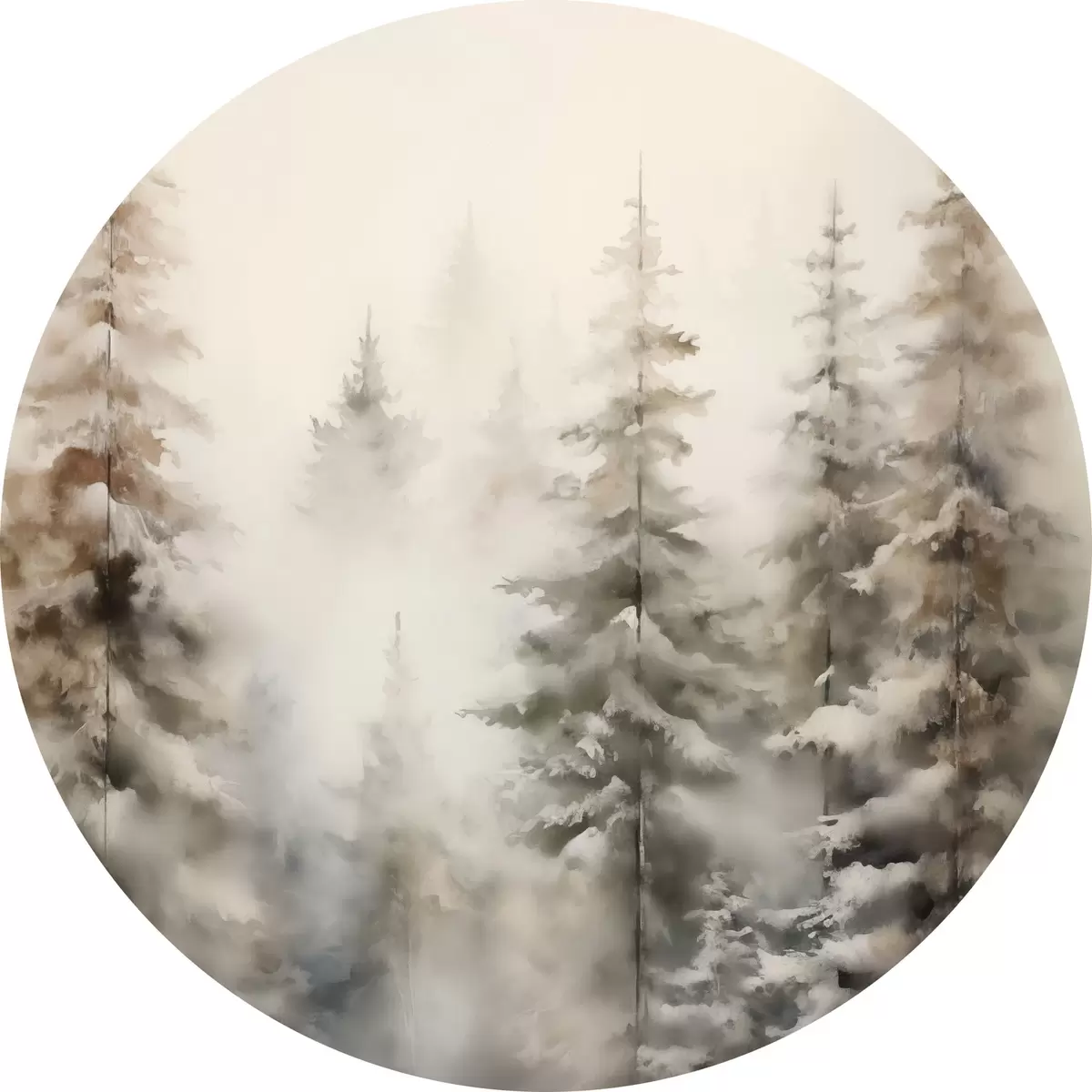 Obrázek Vysoké borovice pokryté sněhem, stojící v zamlženém lese, jemná, tlumená zimní scéna Nr r46701
