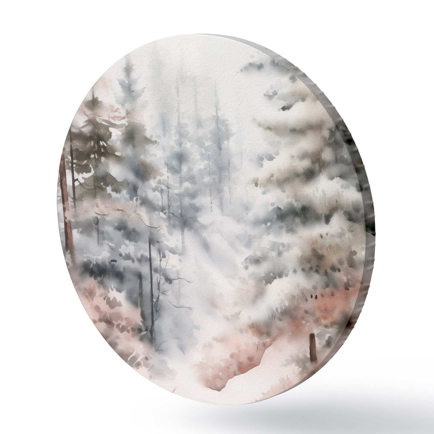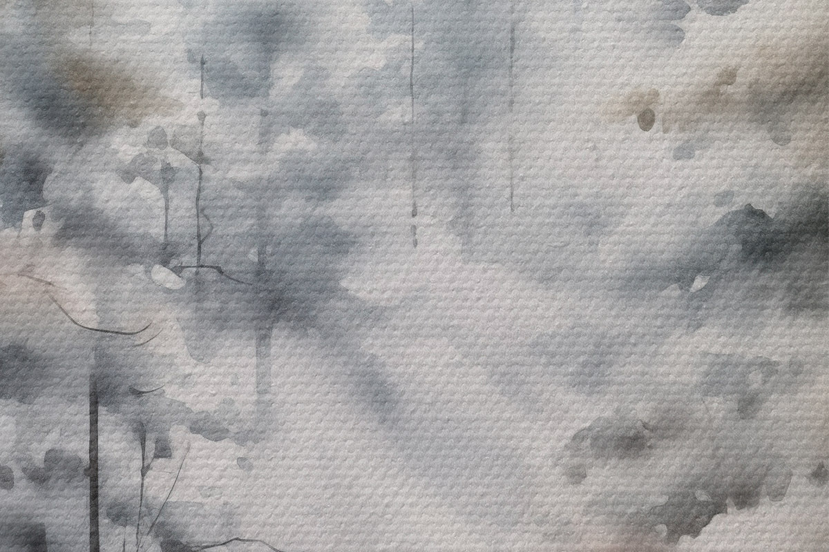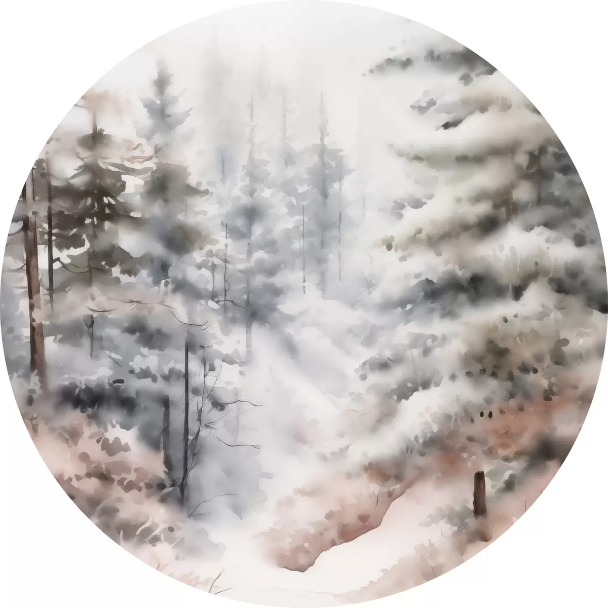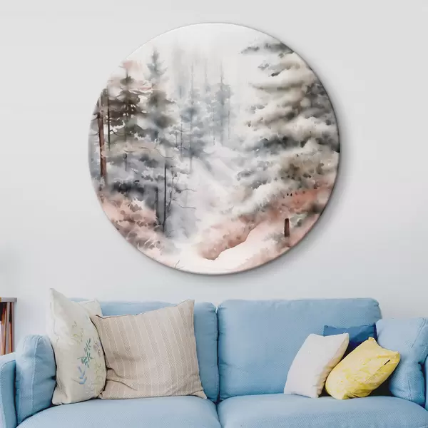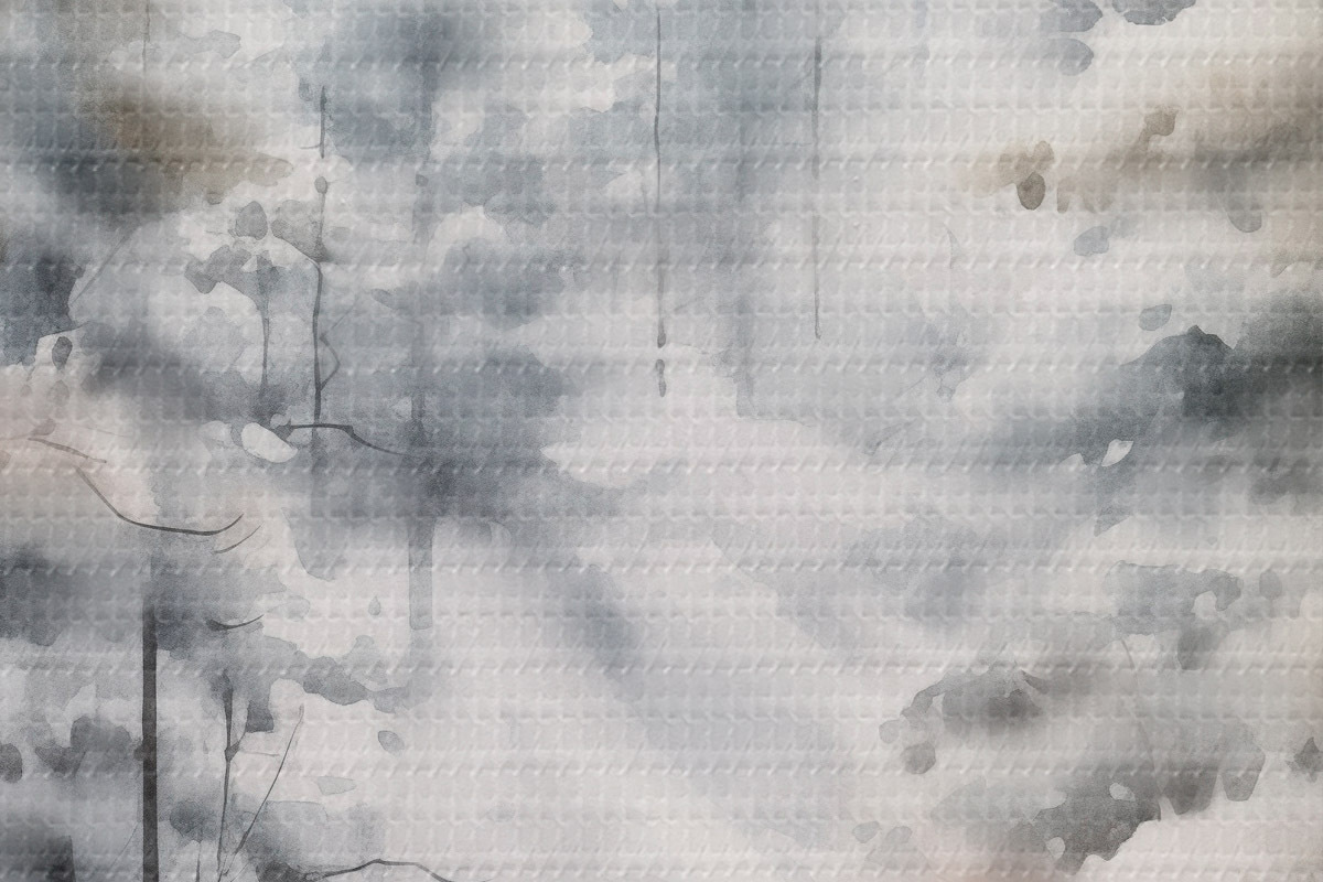 Obrázek Vysoké borovice pokryté sněhem, stojící v zamlženém lese, jemná, tlumená zimní scéna Nr r46702
