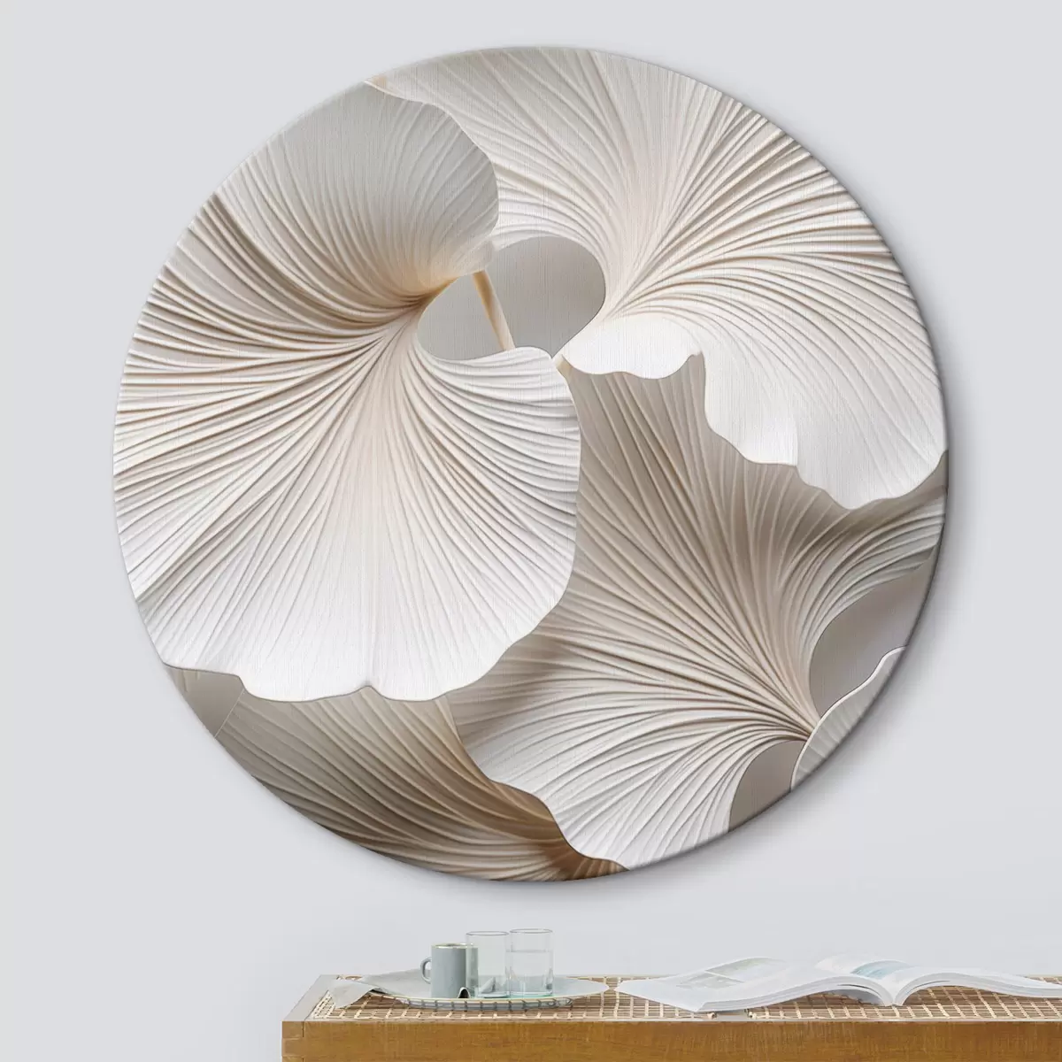Obrázek Bílé listy ginkgo biloba s detailními žilkami, jemným osvětlením, texturovaným elegantním a minimalistickým designem Nr r46705