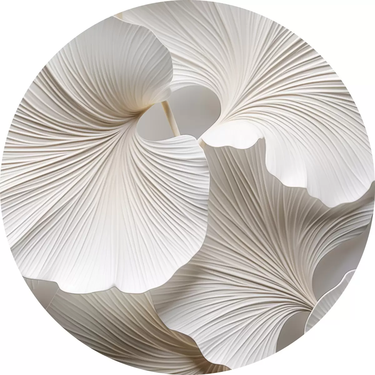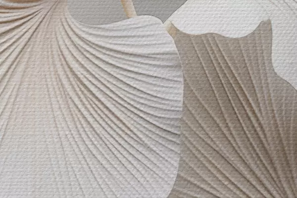 Obrázek Bílé listy ginkgo biloba s detailními žilkami, jemným osvětlením, texturovaným elegantním a minimalistickým designem Nr r46705