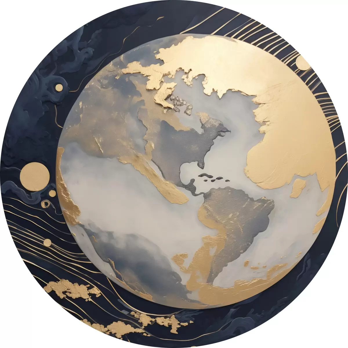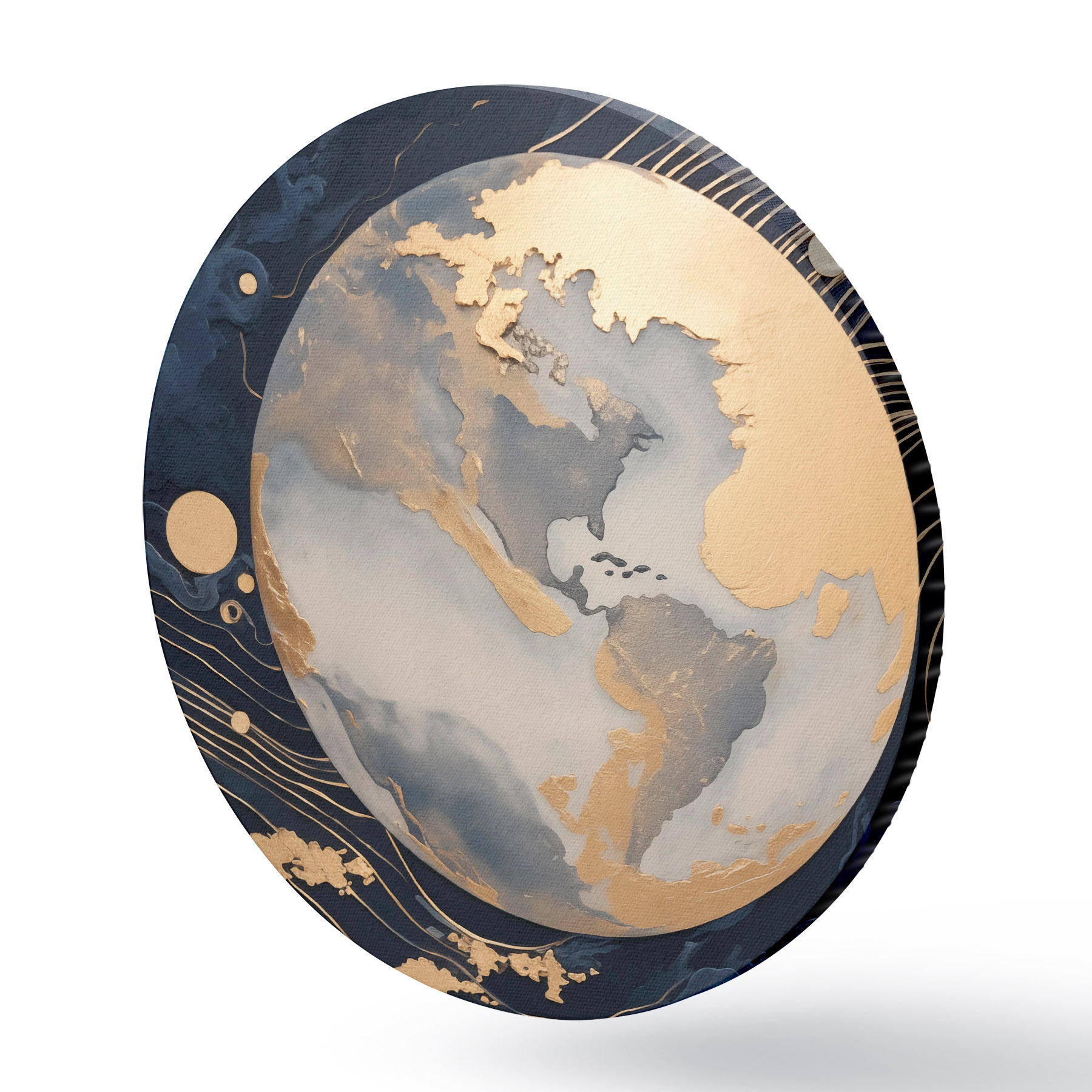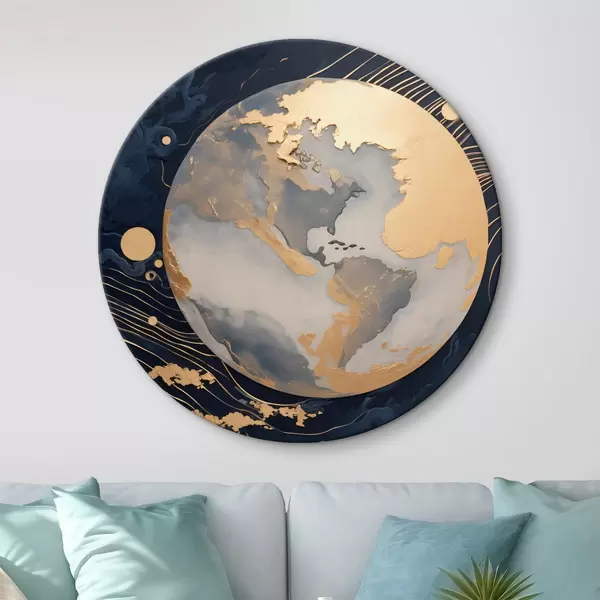 Obrázek Texturovaná dekorativní planeta se žlutými čarami v pozadí, žlutými tečkami v pozadí, tmavým pozadím Nr r46708
