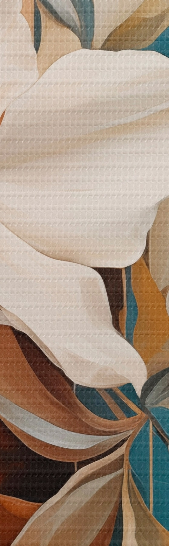 Obrázek Abstraktní bílé květy a listy na hnědém a modrém pozadí s abstraktními tvary, v minimalistickém stylu Nr r46709