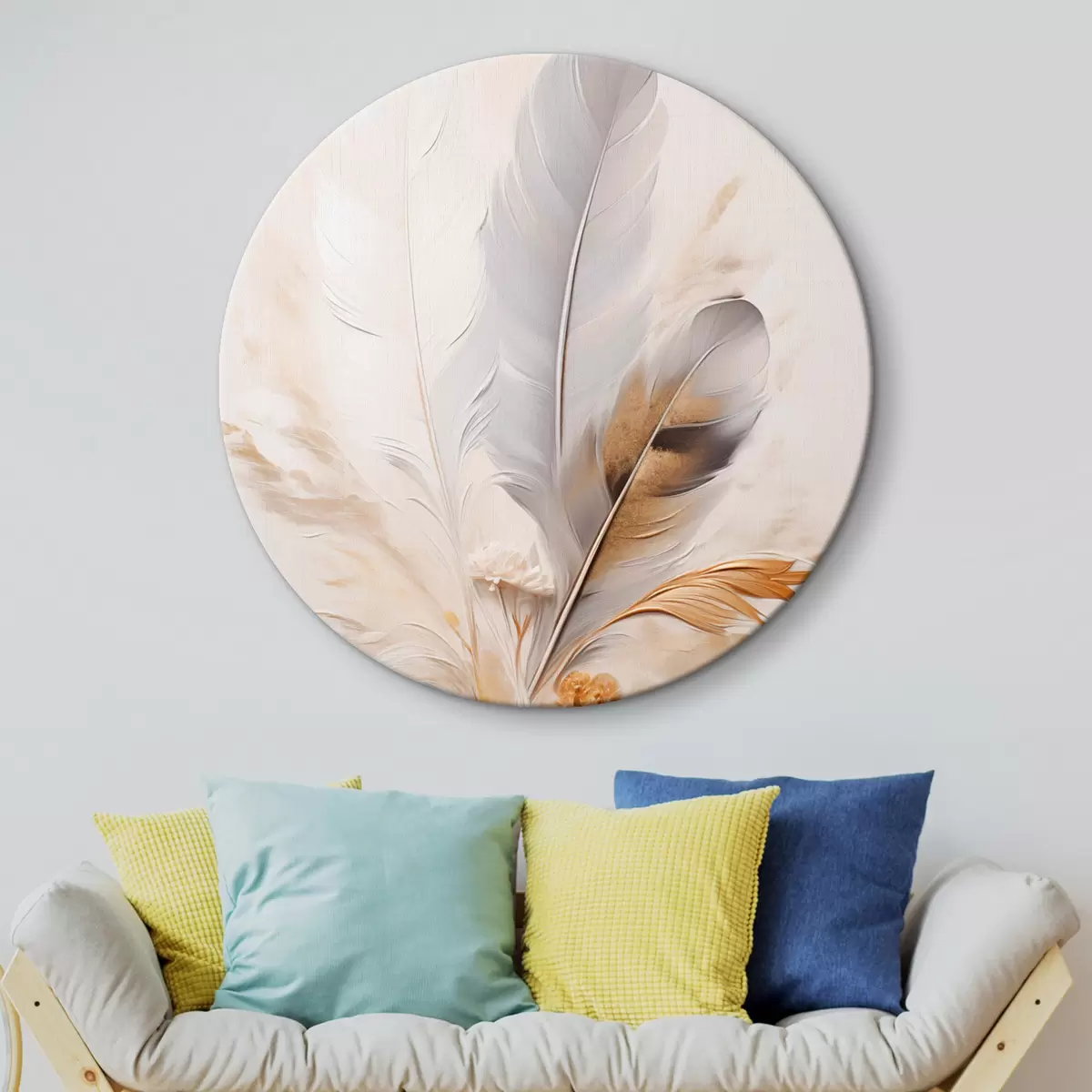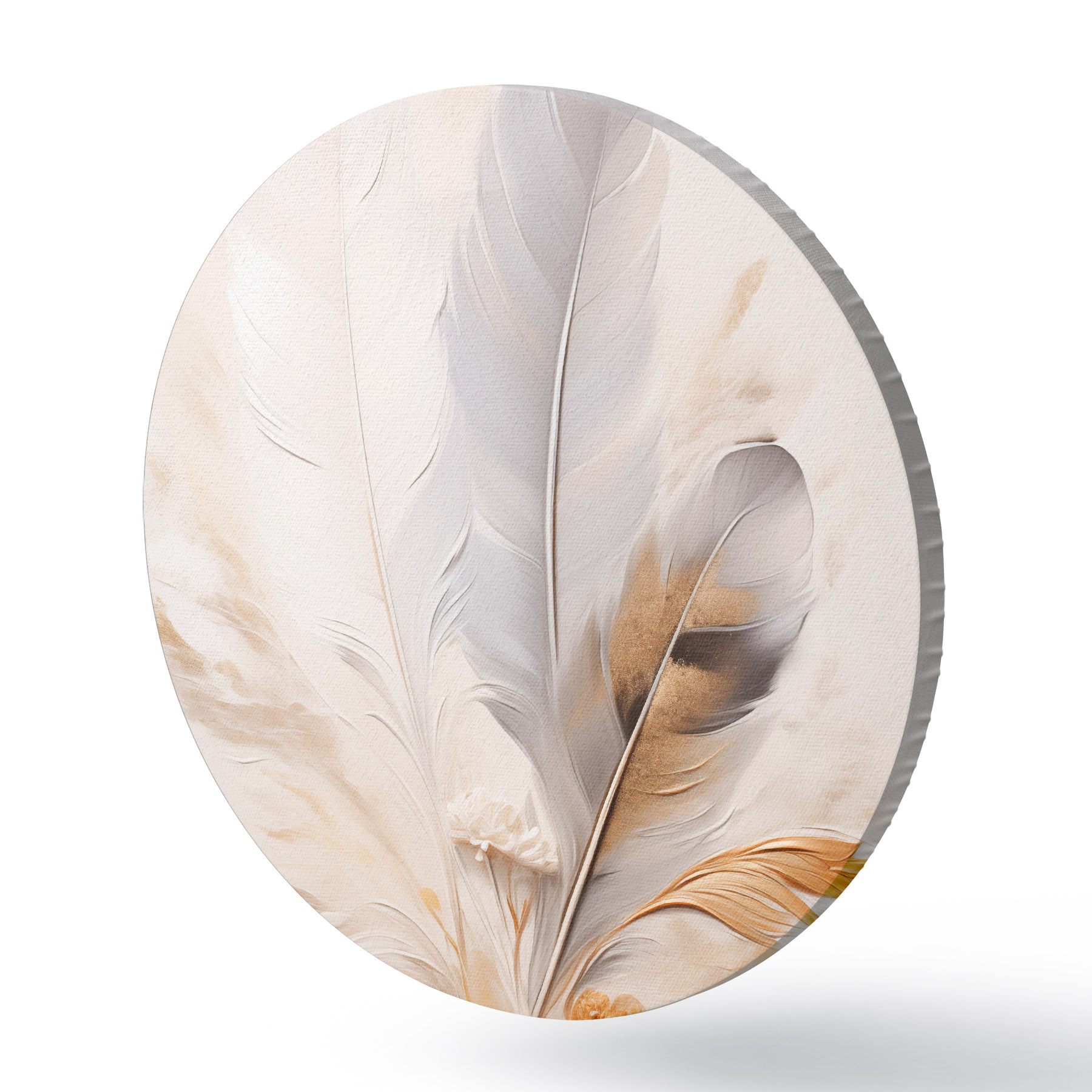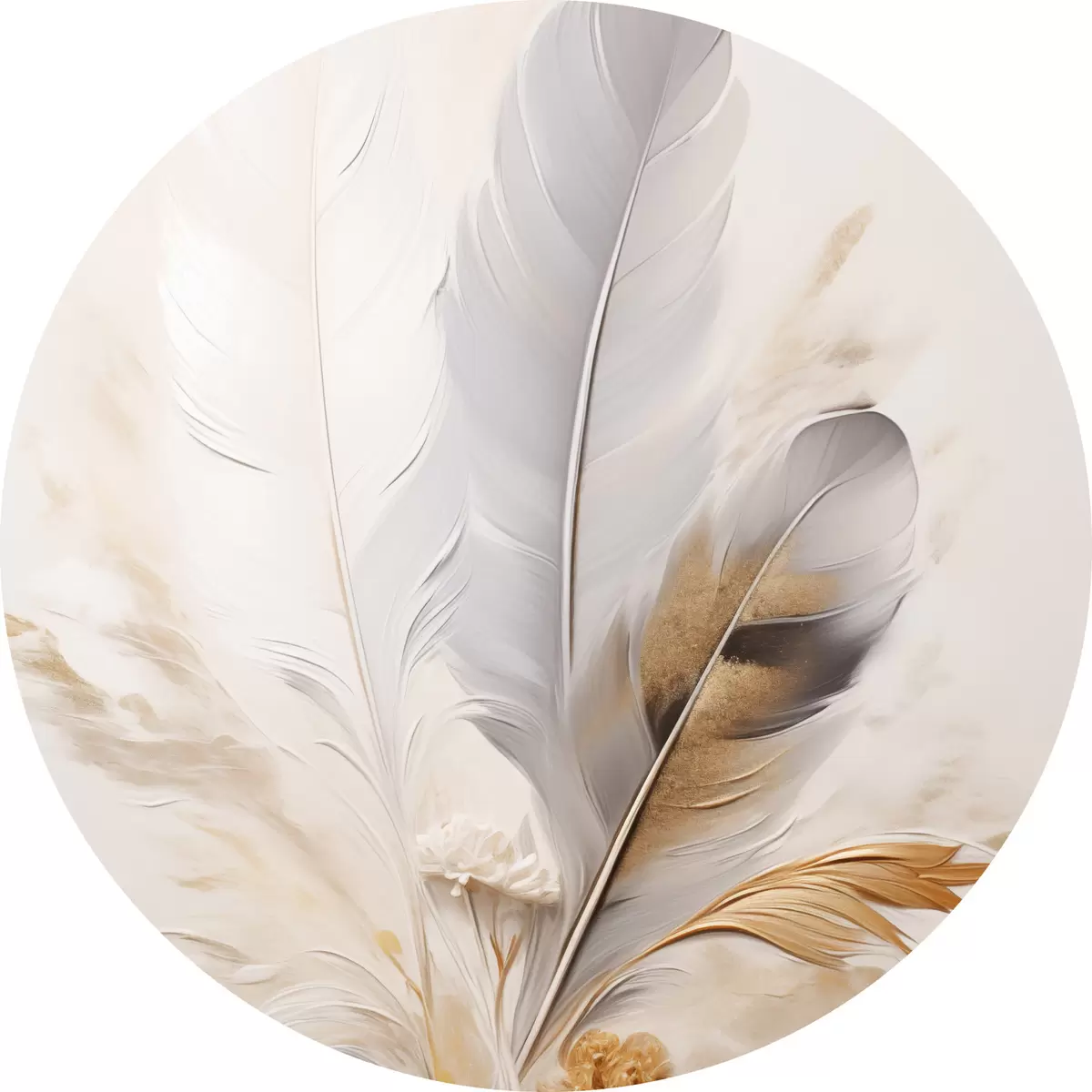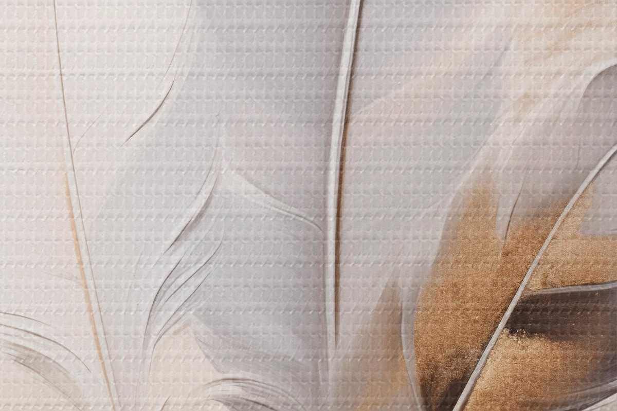 Obrázek Abstraktní peří, obklopené béžovými a hnědými chmýřími, měkké a jemné, na světle béžovém pozadí Nr r46712