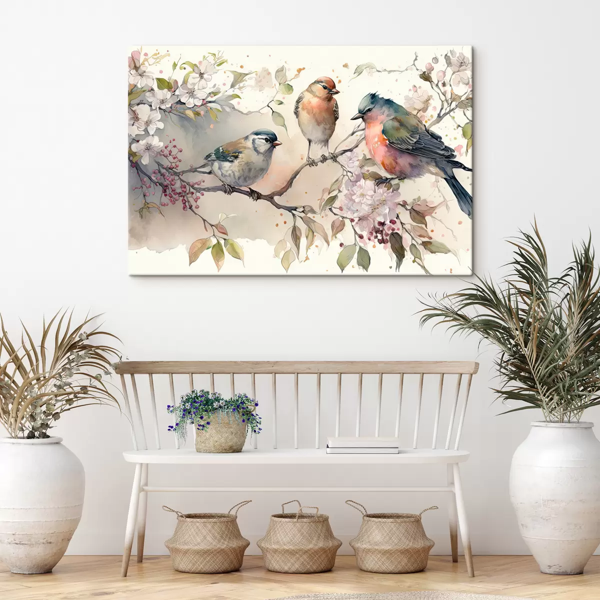 Obraz Vícebarevní ptáci na větvi kvetoucího stromu Č. s34490