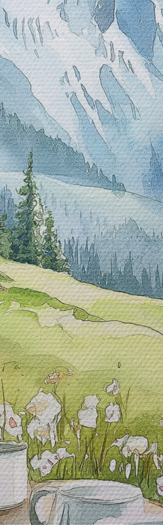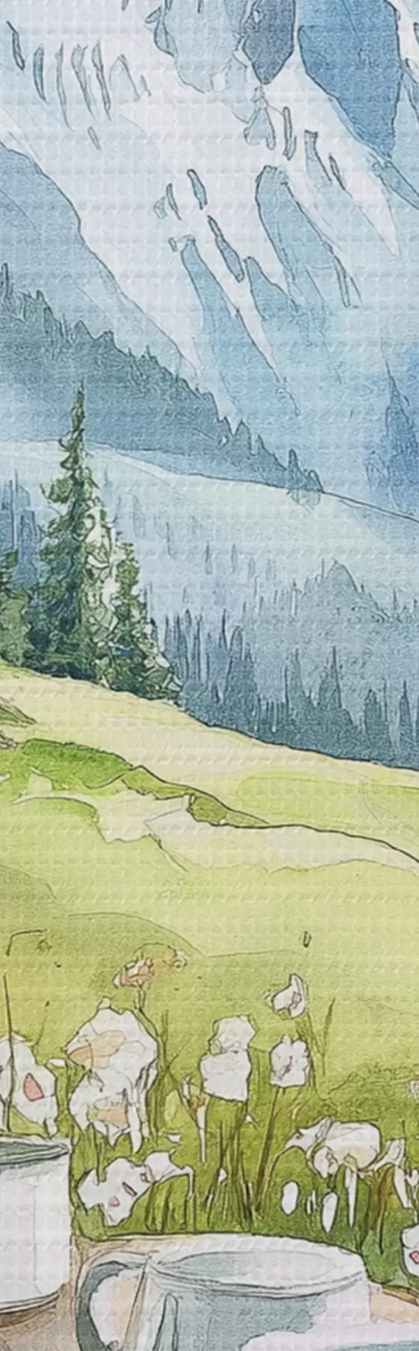 Obraz Alpy, krásná horská krajina, estetická snídaně, dřevěné domy Č. m00403