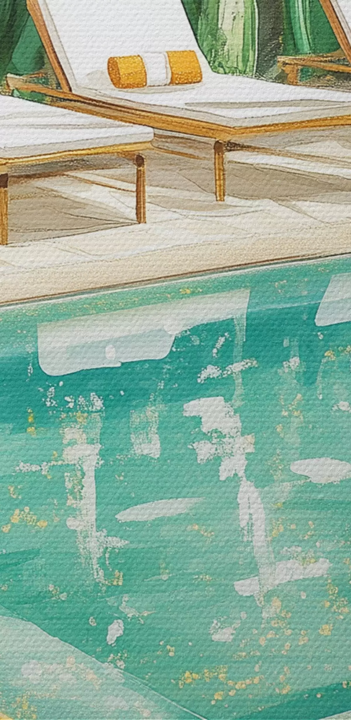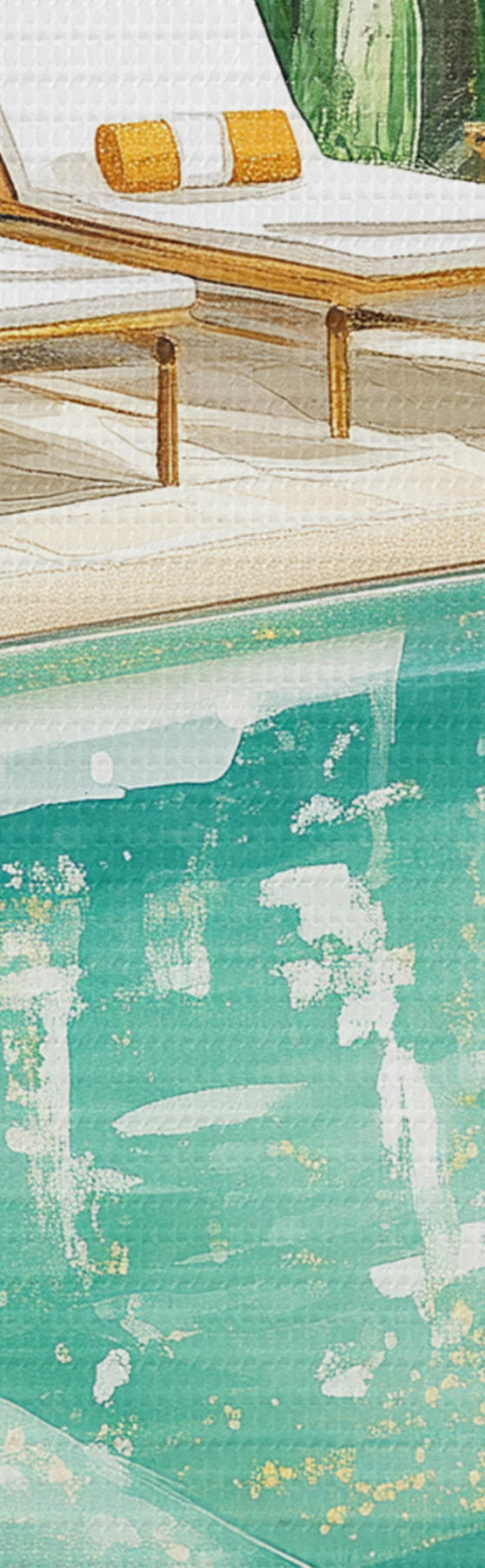 Obraz Letní bazén, vinobraní, tropický les, zeleň, palmy, akvarelový styl Č. m00422