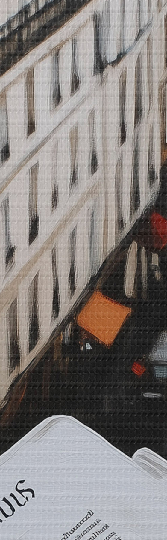 Obraz Pohled na město na balkoně v Paříži, Eiffelova věž, jahody, káva, deník Č. m00445