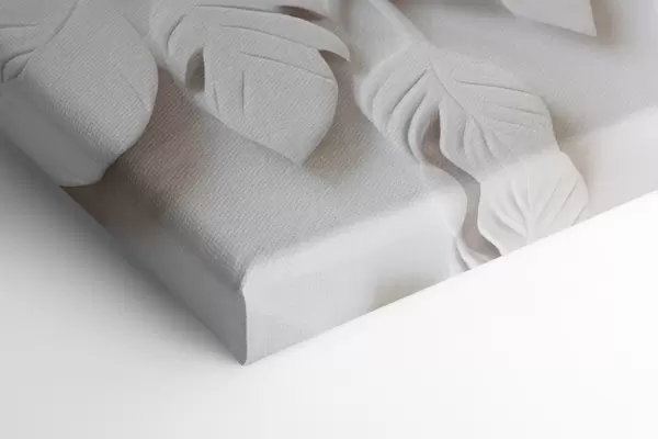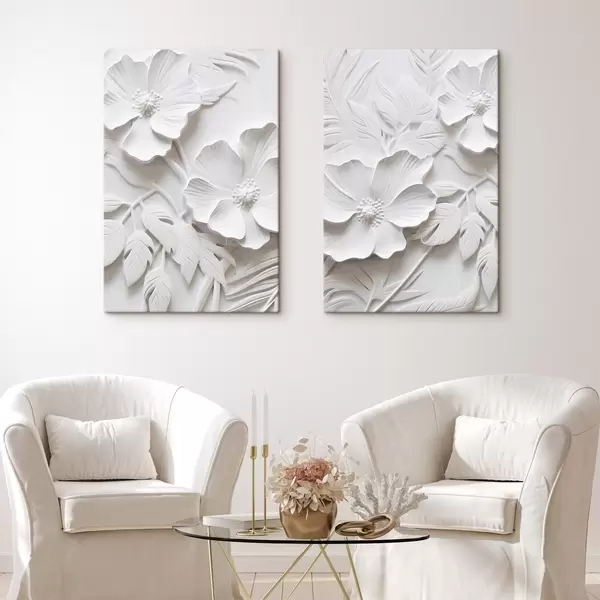 Obraz Dekorativní minimalistické bílé květy s listy, imitace reliéfu, bílé pozadí Č. m00524