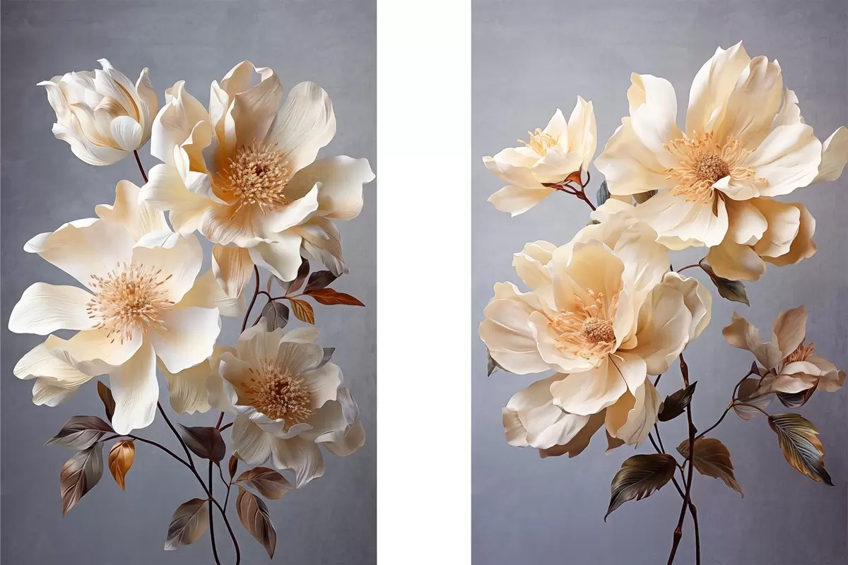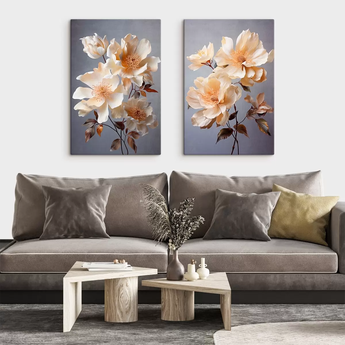 Obraz Texturované květy s oranžovými pestíky a oranžovými listy na šedém pozadí, měkké světlo, elegantní, detailní, realistické Č. m00525