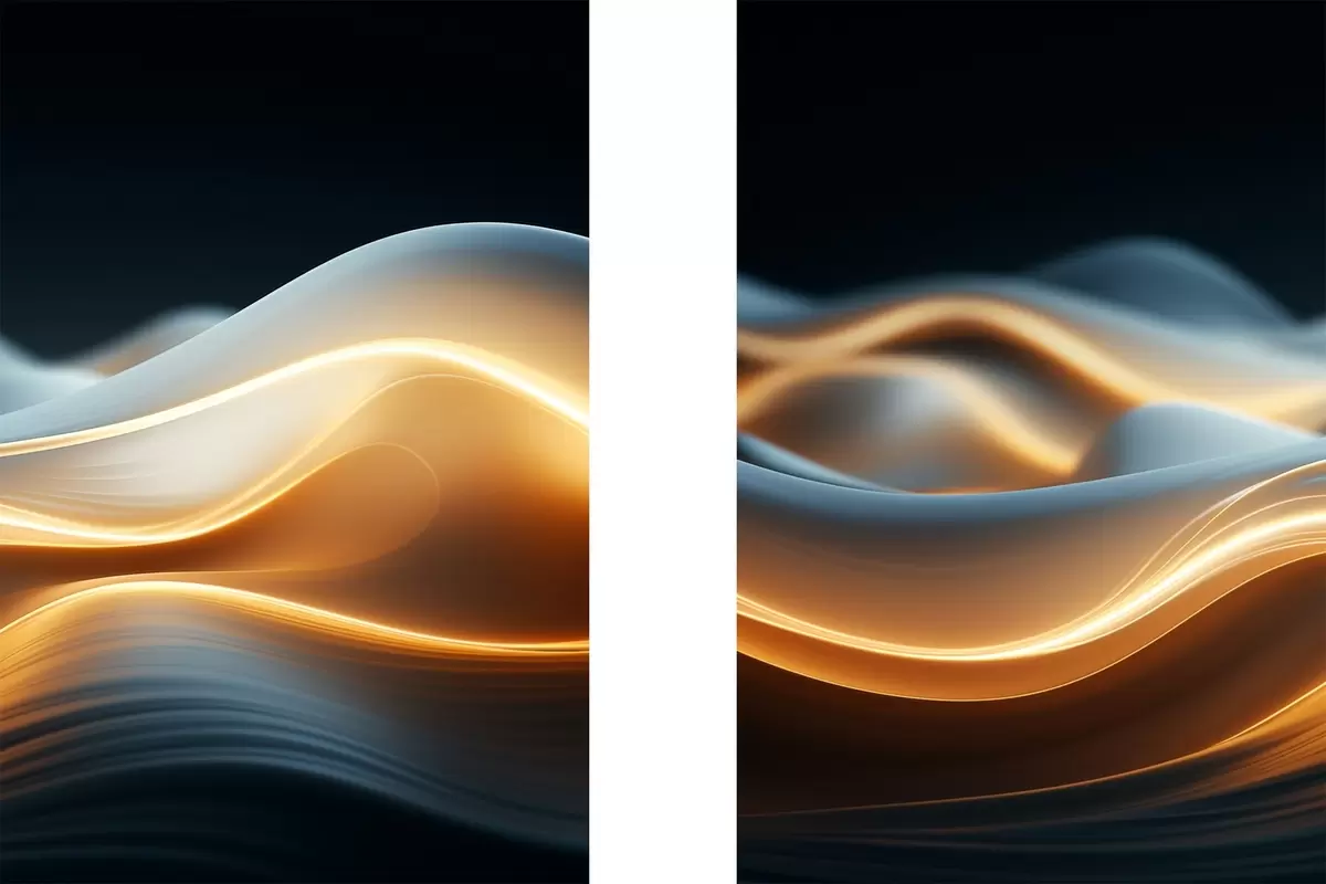 Obraz Abstraktní tekoucí tvary s oranžovými liniemi, hladké křivky a linie, dynamická kompozice, tmavé pozadí Č. m00526
