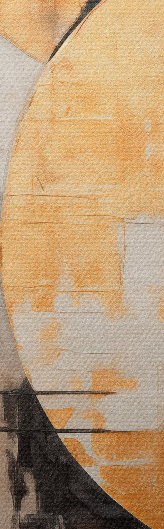 Obraz Abstraktní malba s kruhy, černými a žlutými liniemi a pozadím v šedých a bílých tónech Č. m00527
