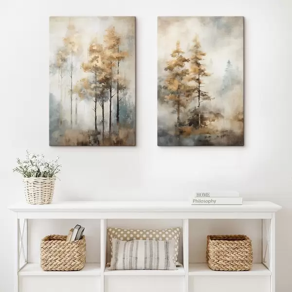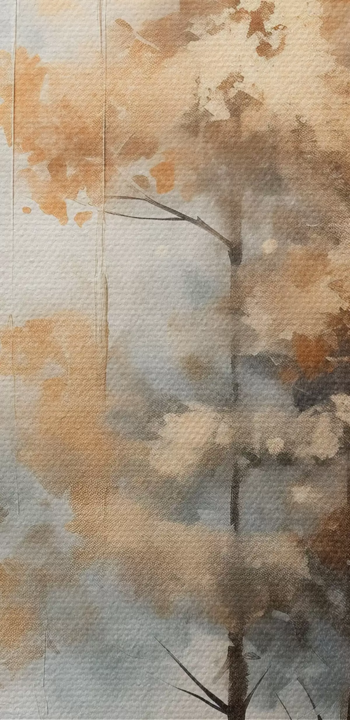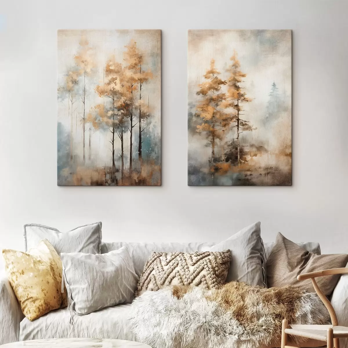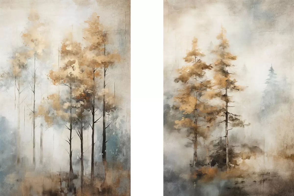 Obraz Texturované vysoké stromy se žlutými listy v lese , pozadí je směs jemných modrých a hnědých tónů Č. m00528