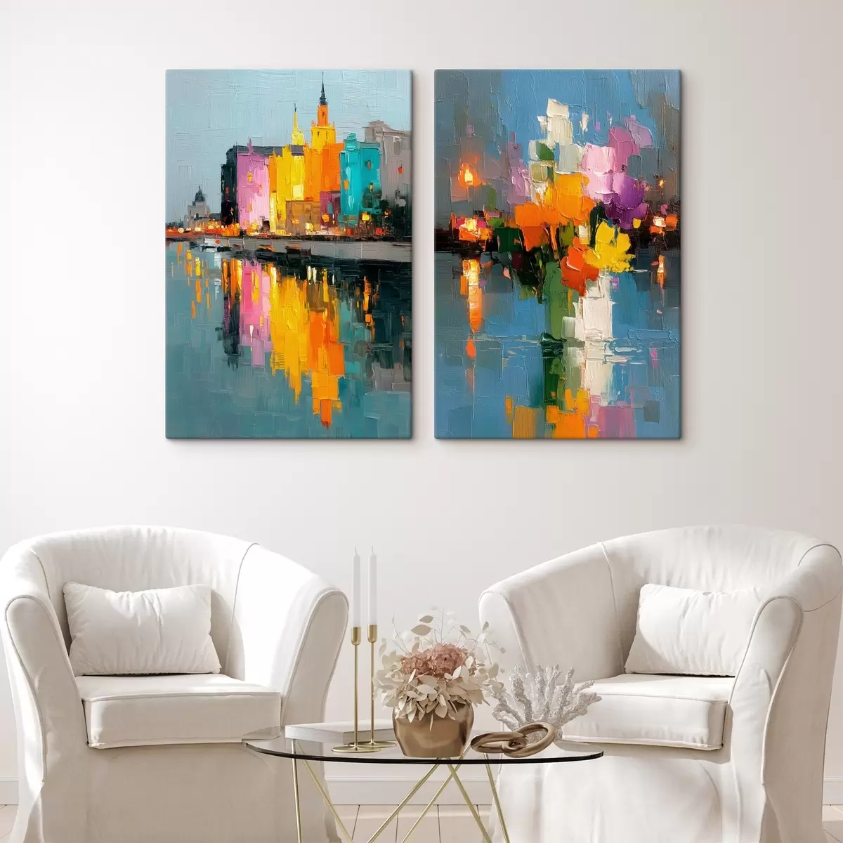 Obraz Dynamika města: abstraktní kompozice s odrazy světel na řece Č. m00569